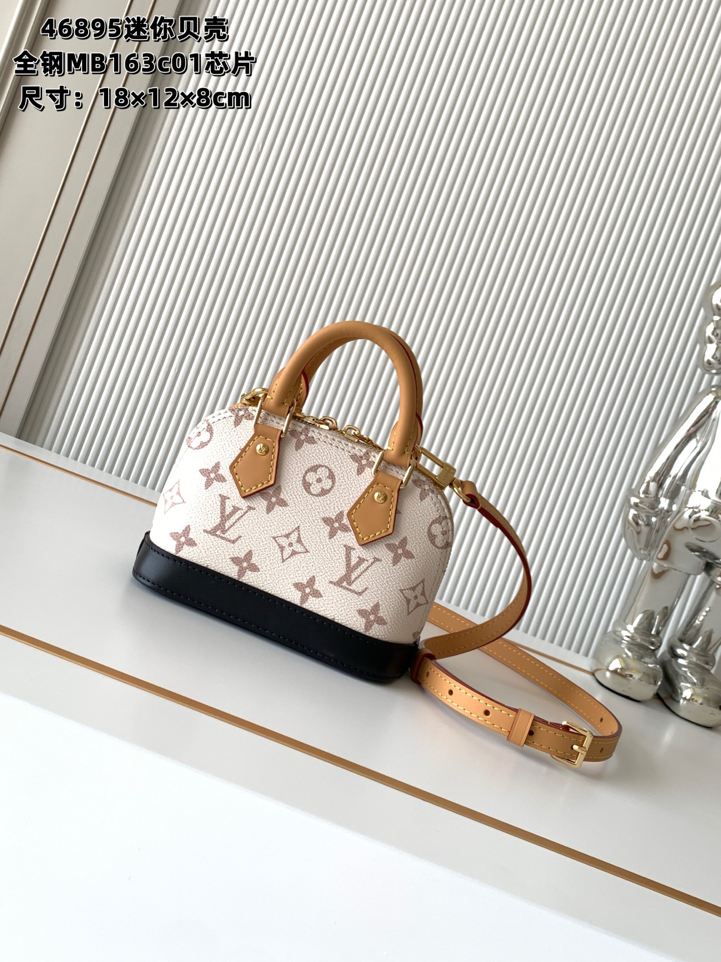 秋冬特惠💰1250 渠道级LV【全钢五金 MB163c01变码芯片】te级LV 全套包装 M46895白花迷你贝壳包系列 New launch Nano Alma 手袋