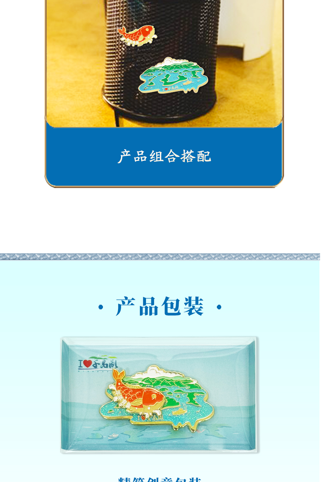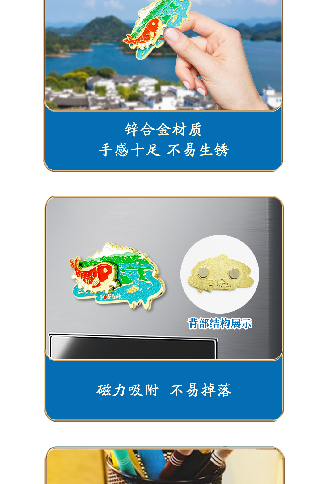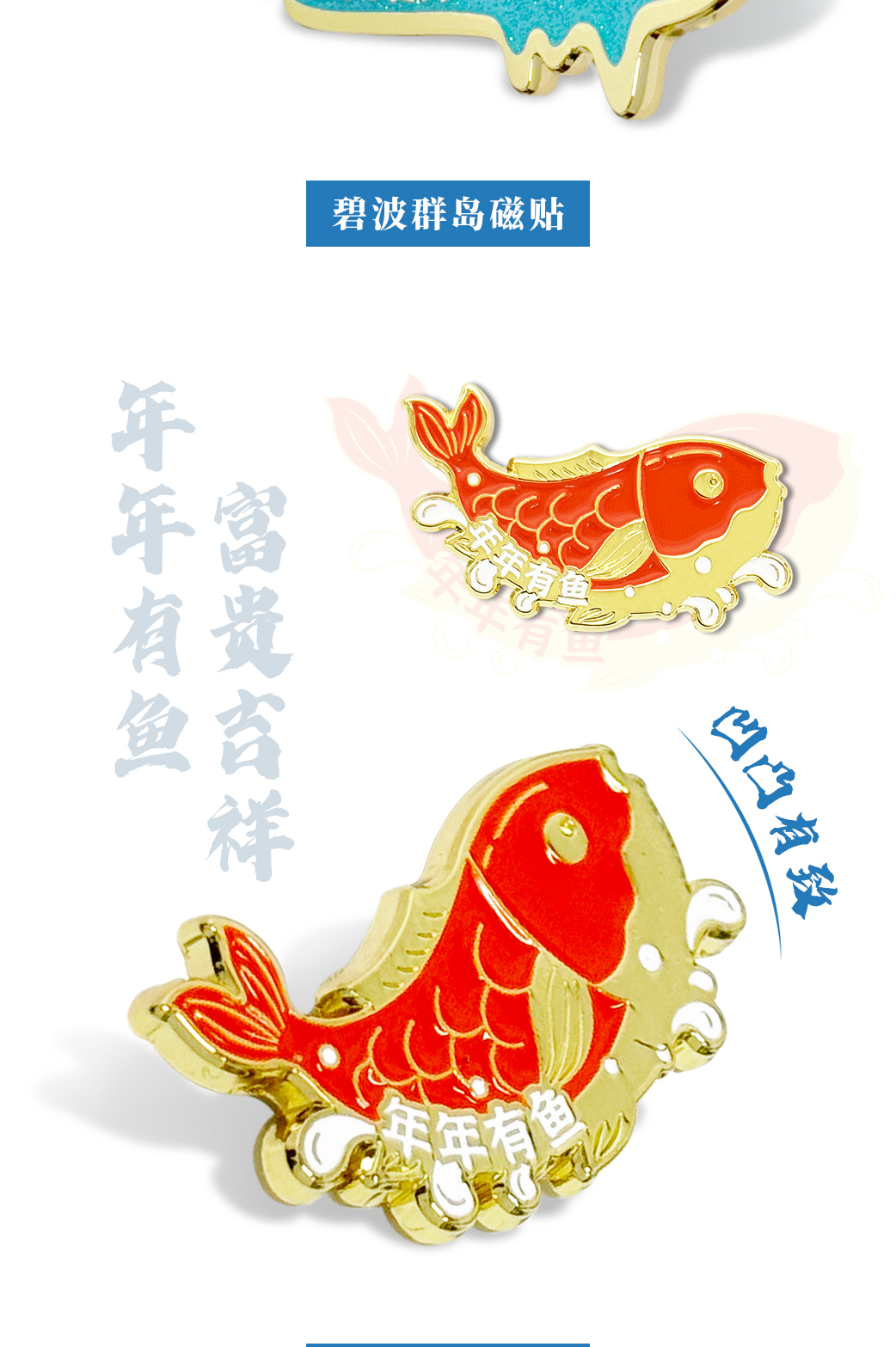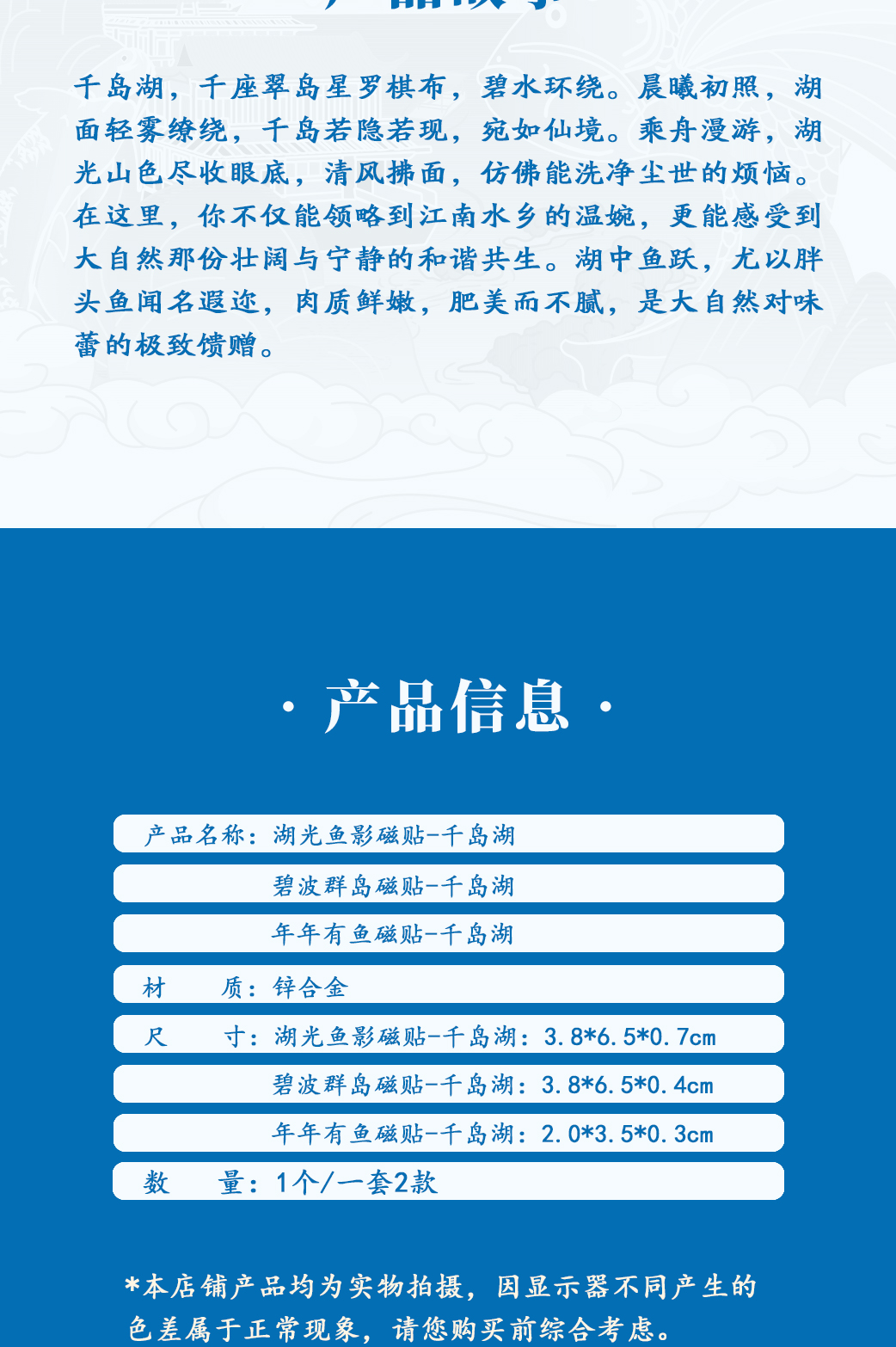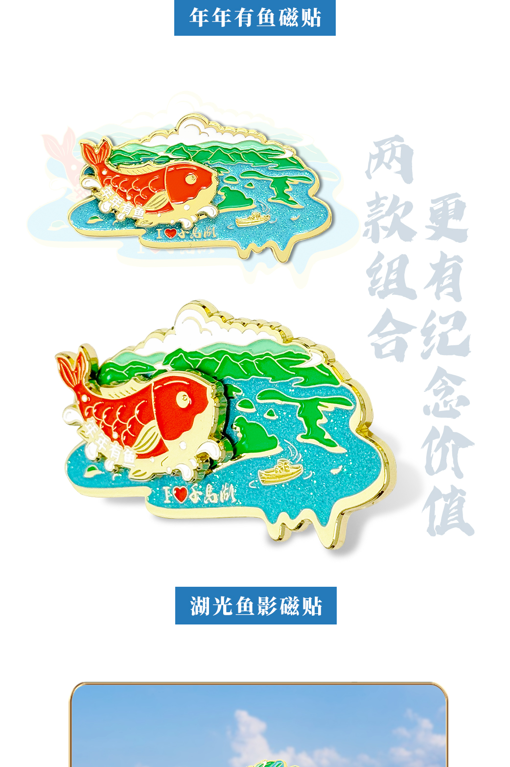 千岛湖磁贴年年有余湖光鱼影组合冰箱贴