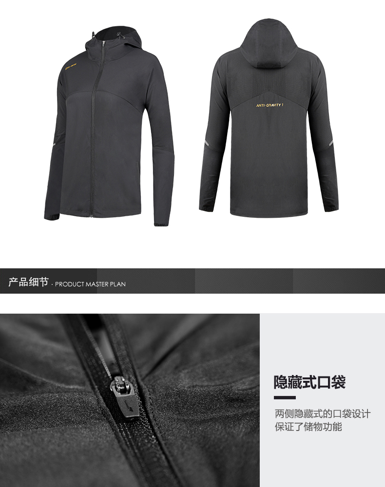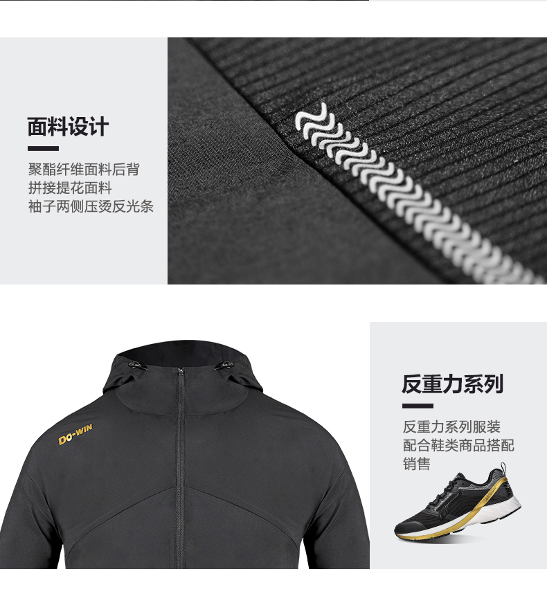 多威反重力外套2021年新款黑色百搭休闲梭织运动服2602001