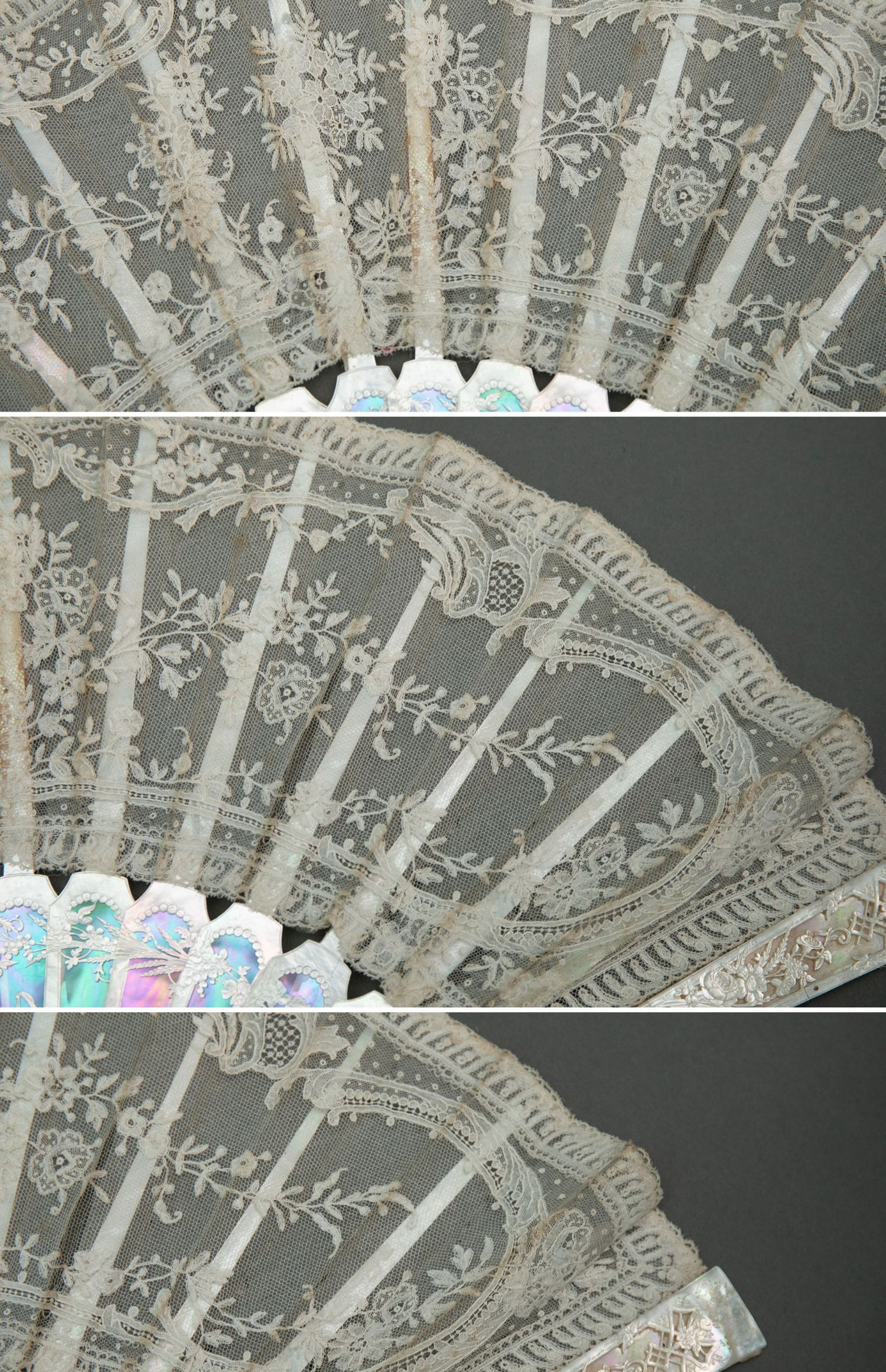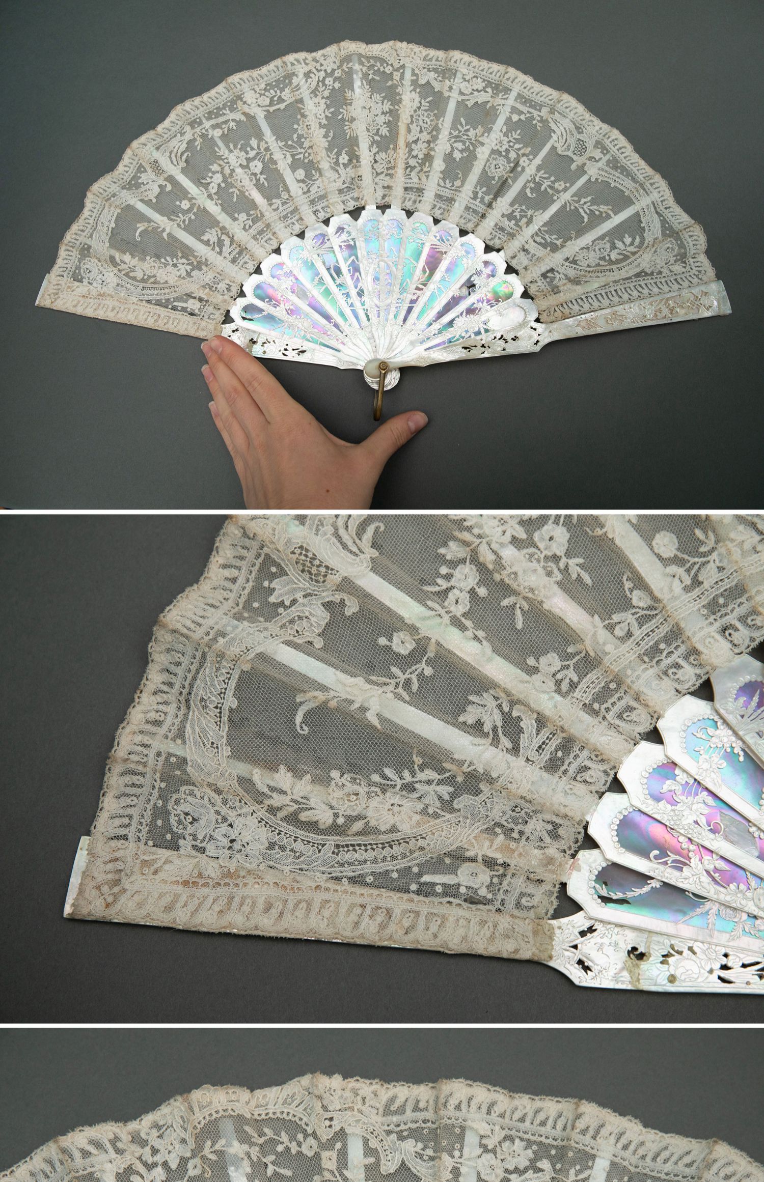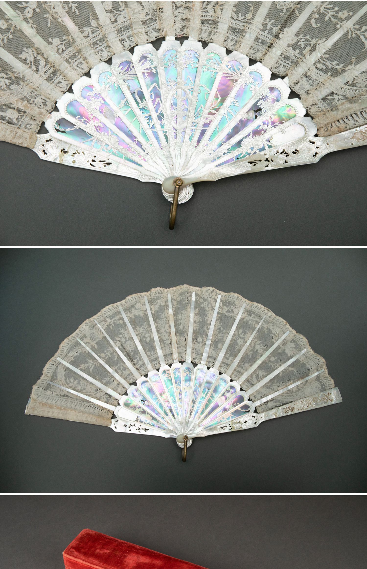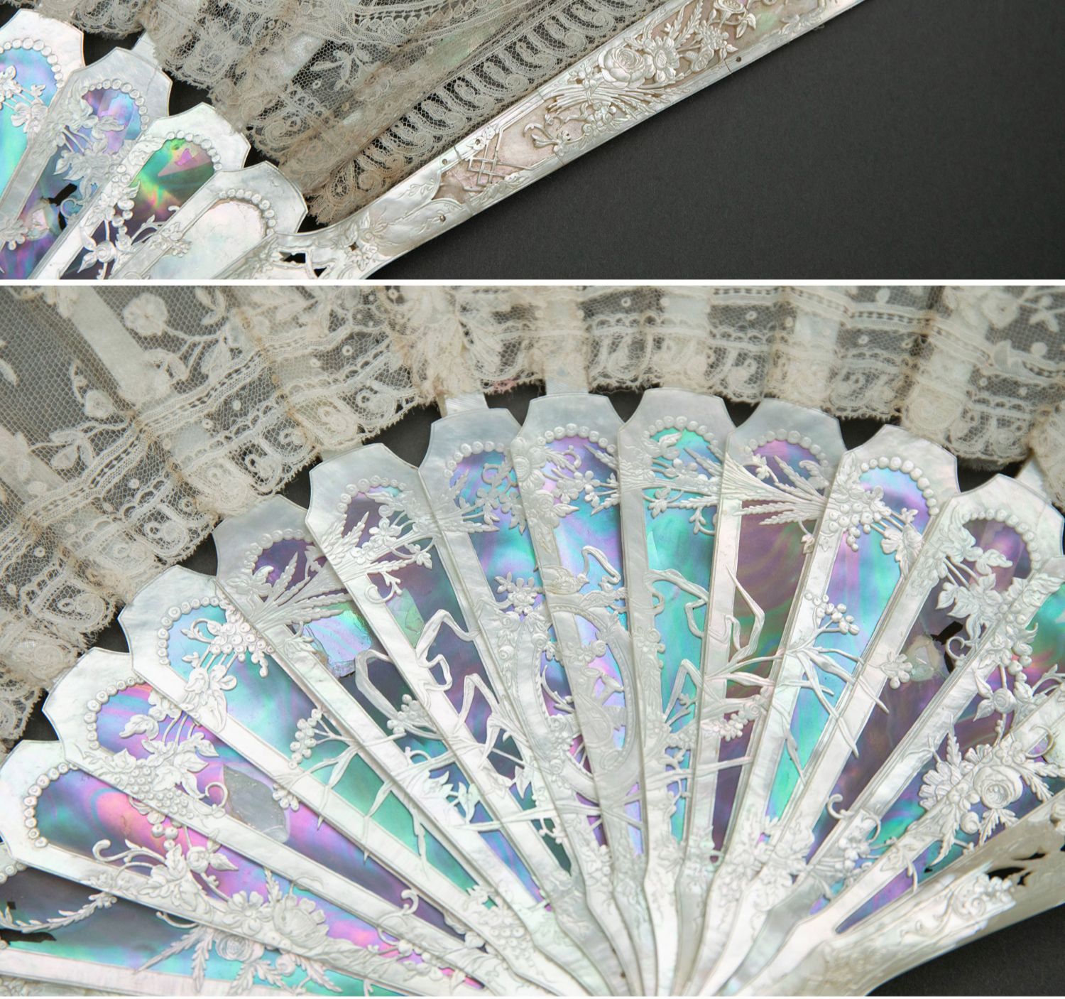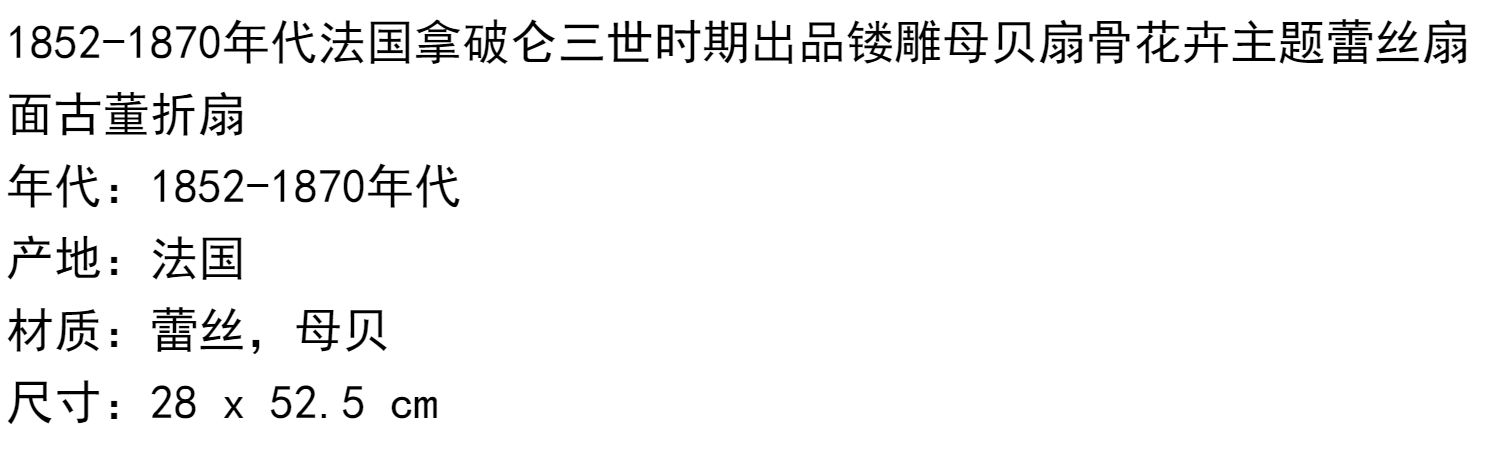 独角鹿西洋古董法国镂雕母贝扇骨花卉主题蕾丝扇面古董折扇