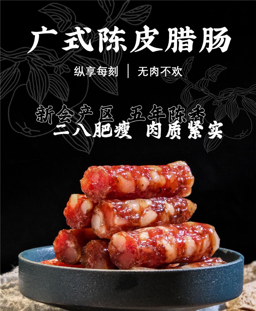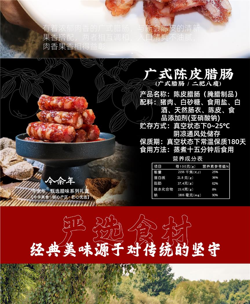 今余年陈皮腊肠,五年陈香二肥八瘦,地道广式风味,煲仔饭清蒸小炒多种花式做法#年货必选【非遗新会陈皮与舌尖3广式腊肠的融合 3斤礼盒装】