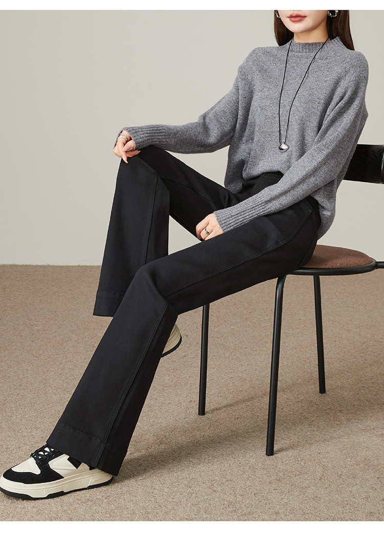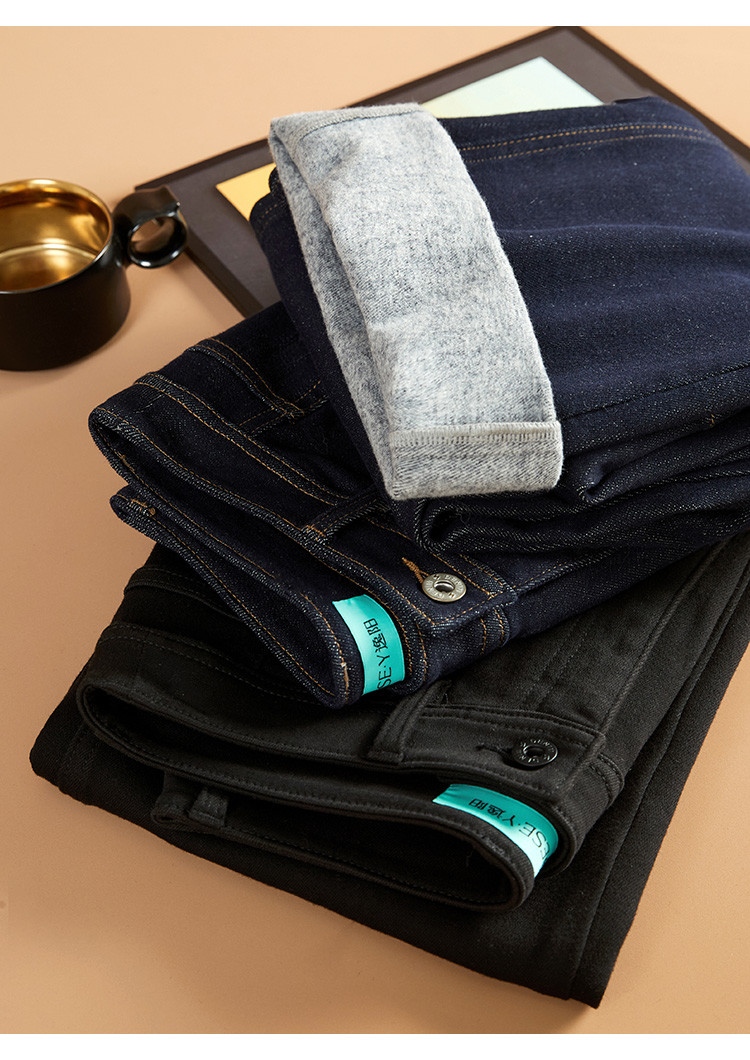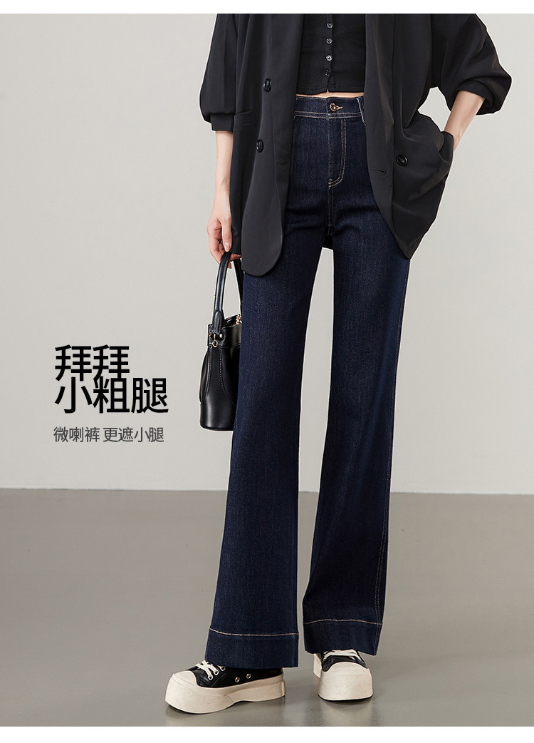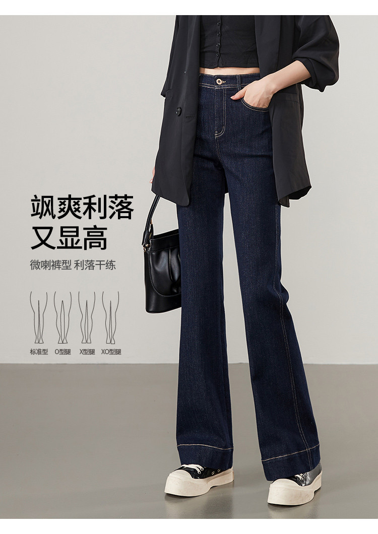 【不易褪色-拉绒-微喇牛仔】逸阳冬新品弹力加绒保暖喇叭裤子5500RV