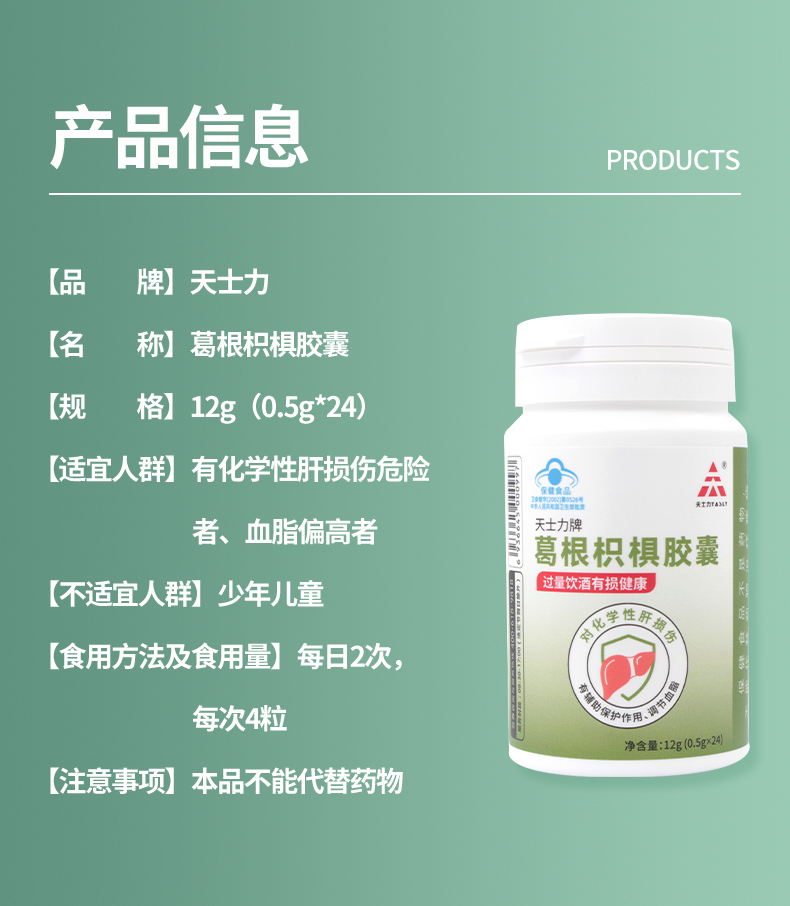 天士力牌葛根枳椇胶囊12g(0.5g*24)