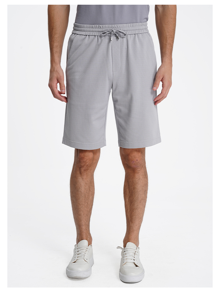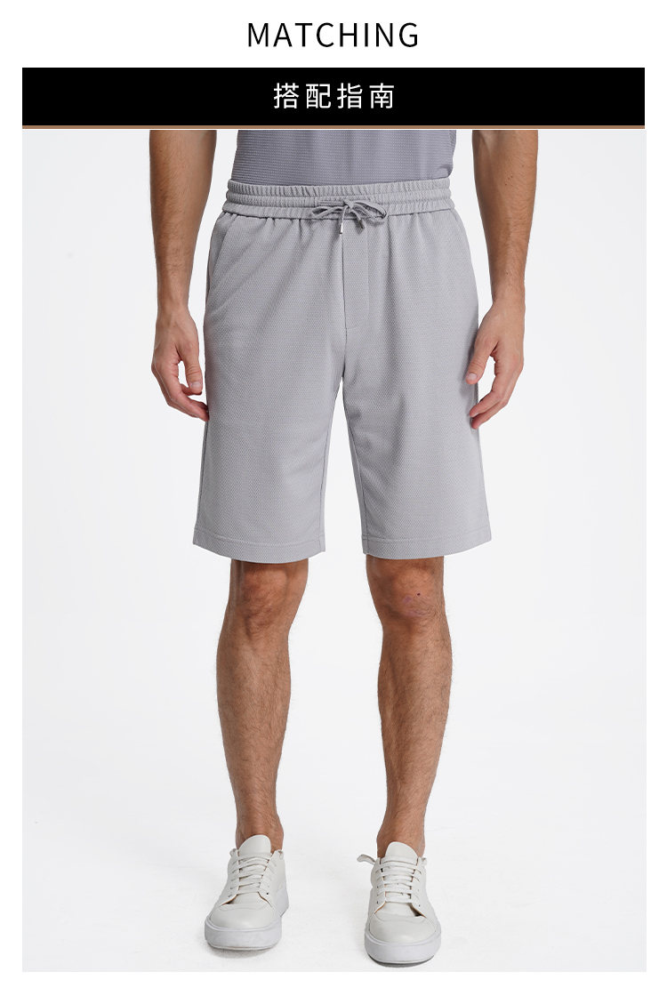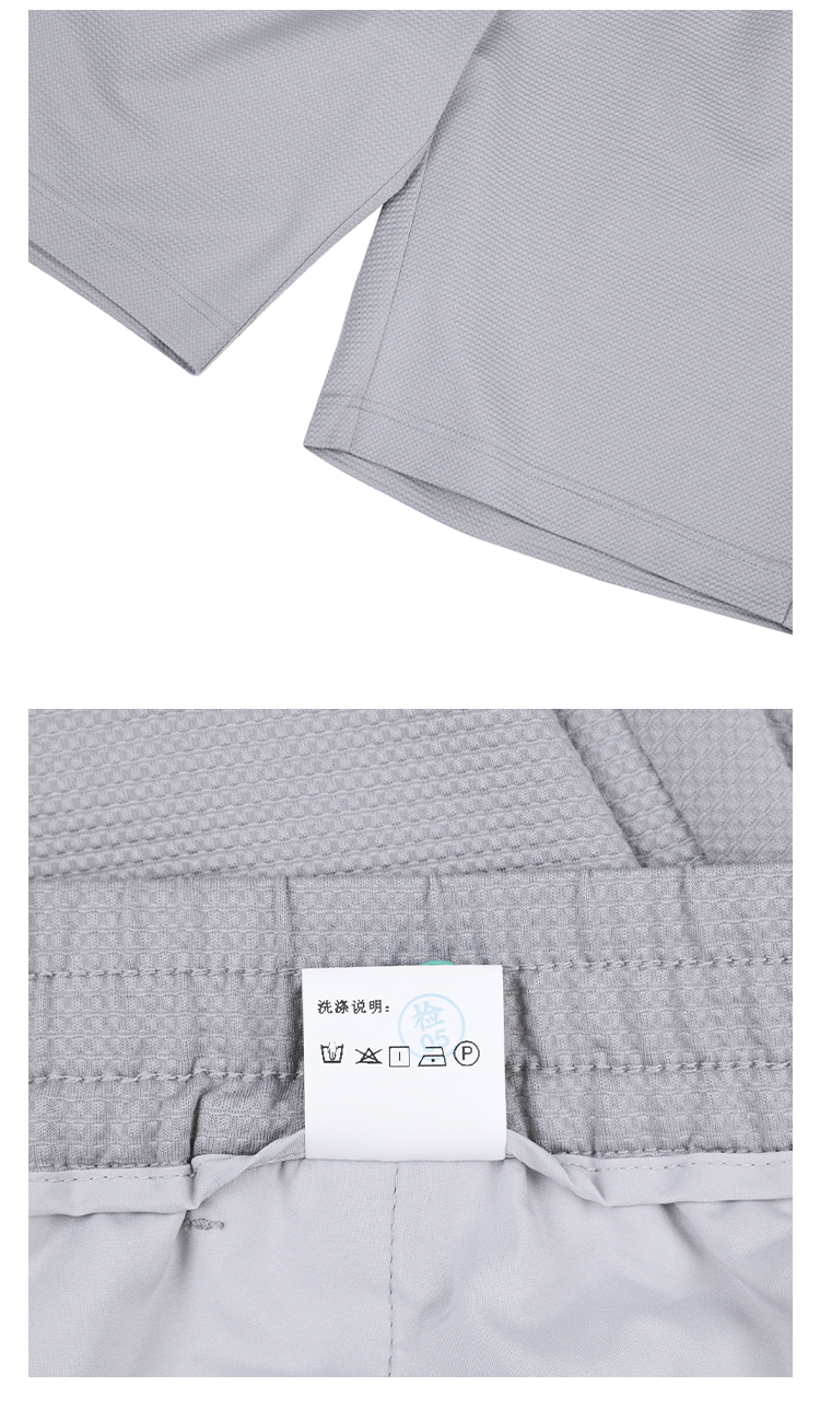 callisto水雾灰丝绵混纺华夫格微泡肌理运动休闲套装短裤