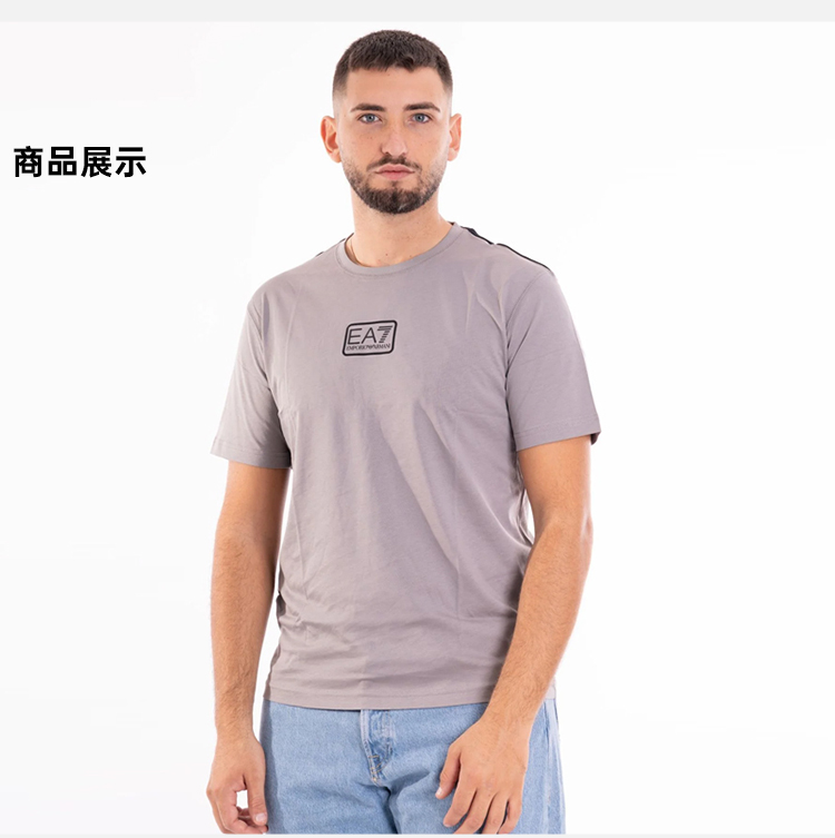 EMPORIO ARMANI EA7 阿玛尼 男士棉质徽标印花圆领短袖T恤 浅灰色 6RPT05 PJ02Z 1920