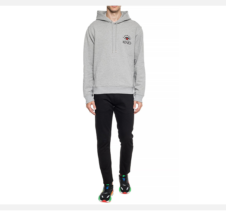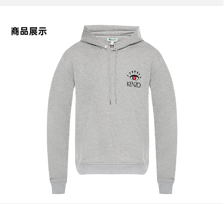 KENZO 高田贤三 男士棉质眼睛图案标志连帽运动长袖卫衣 灰色 F955 SW426 4X4 94