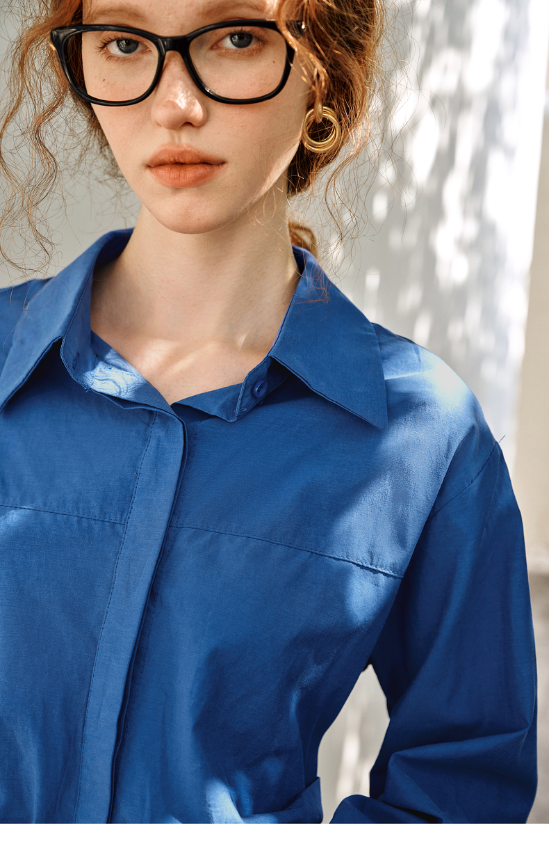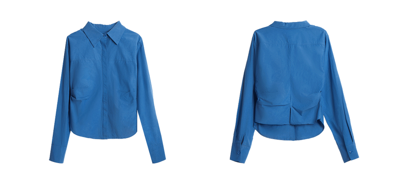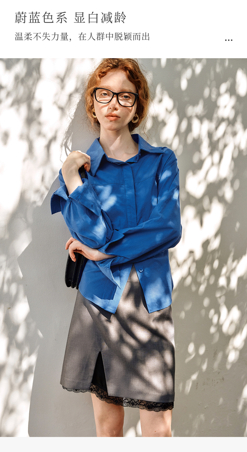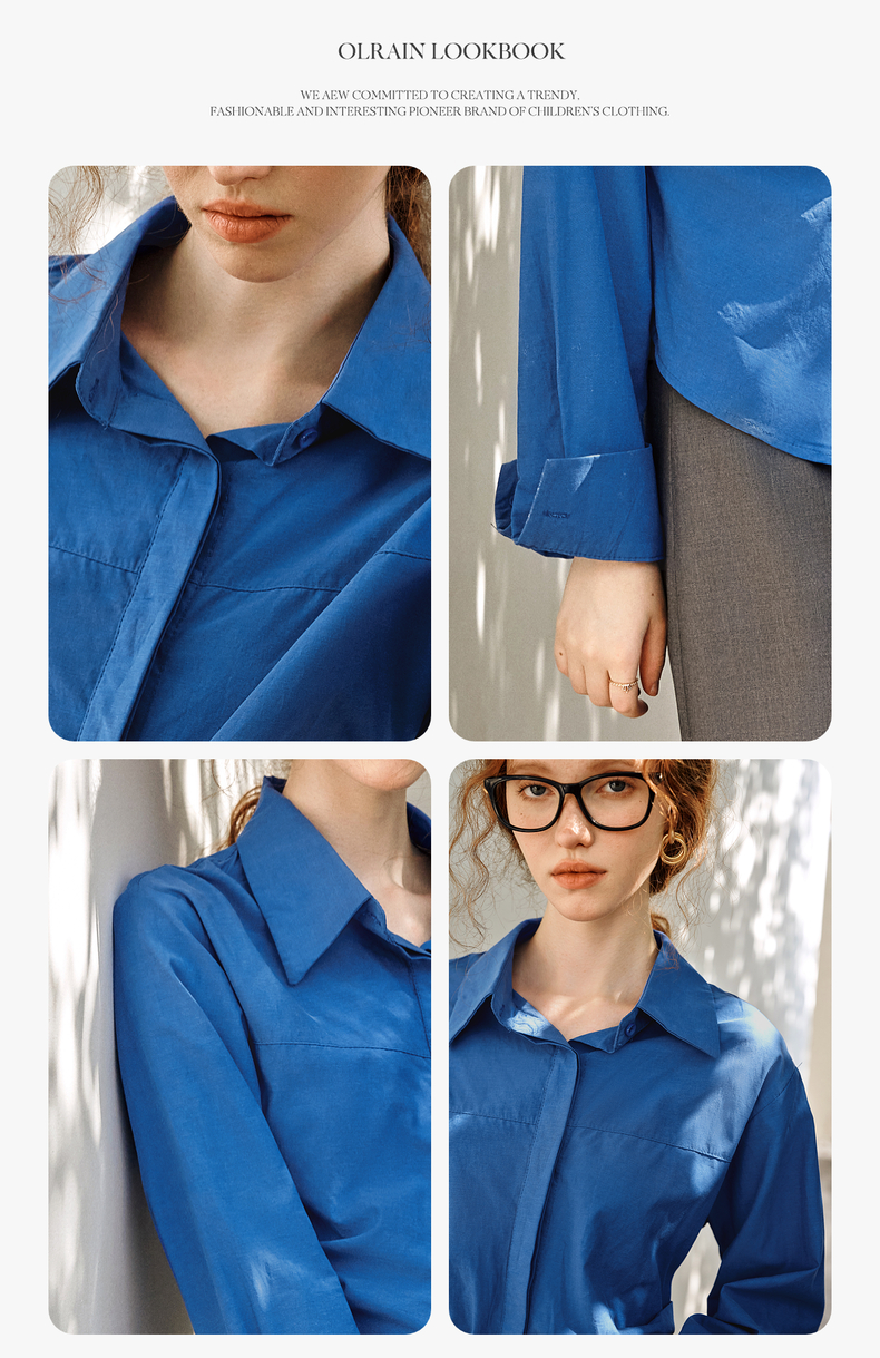 OLrain欧芮儿蓝色长袖衬衫女春季2025年新款通勤收腰设计感衬衣