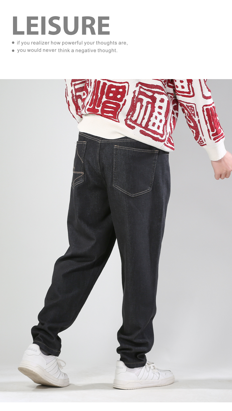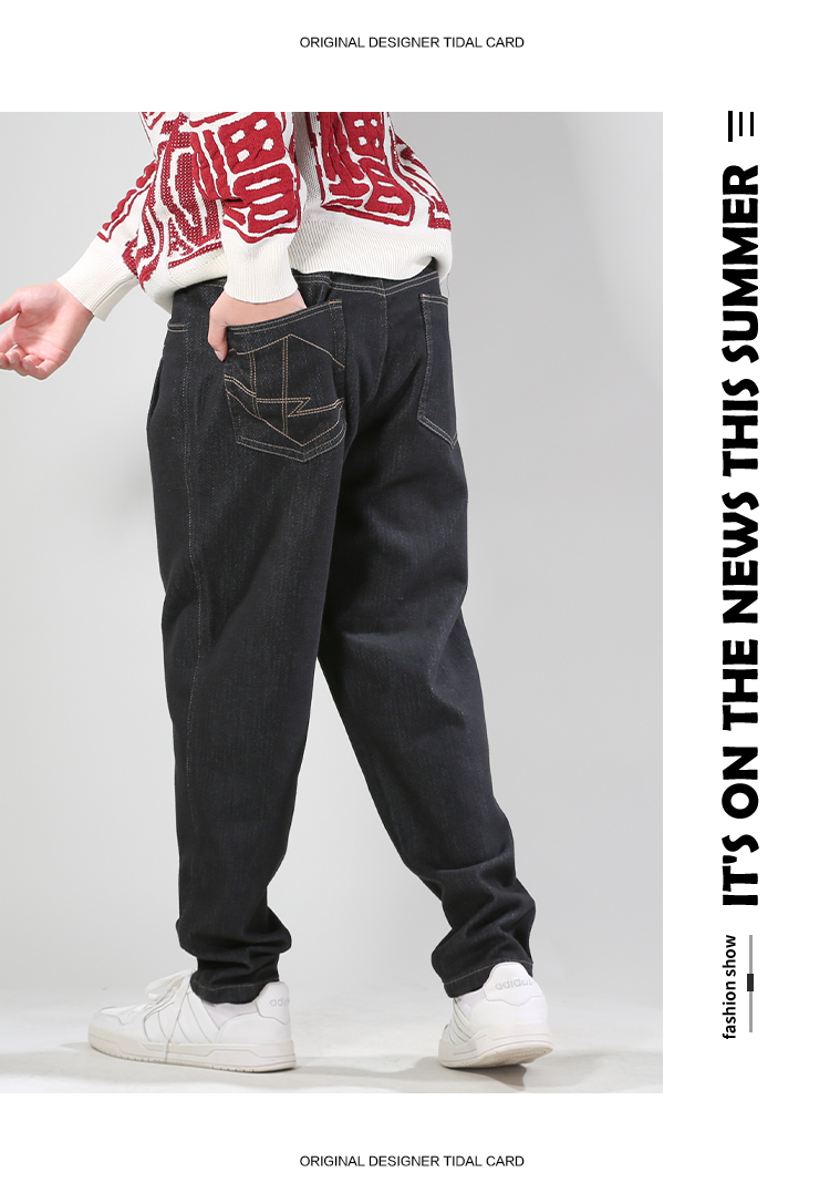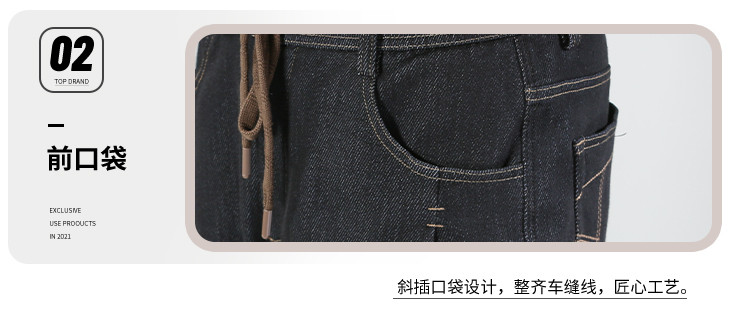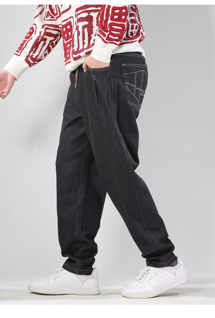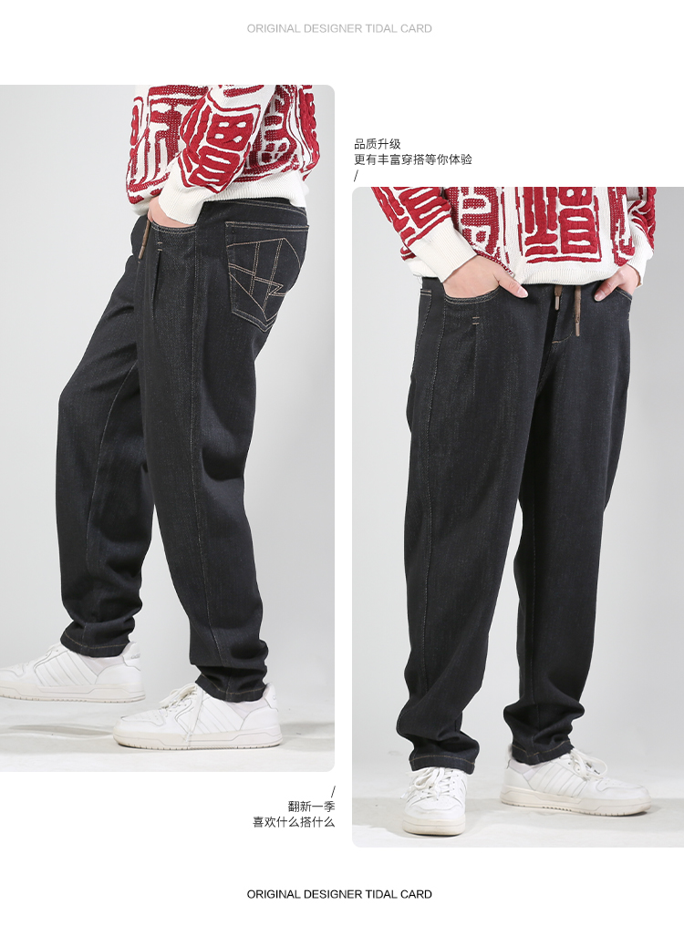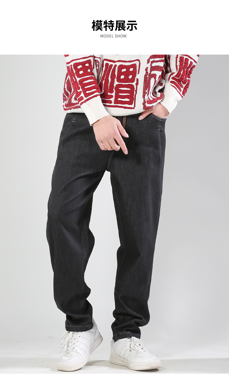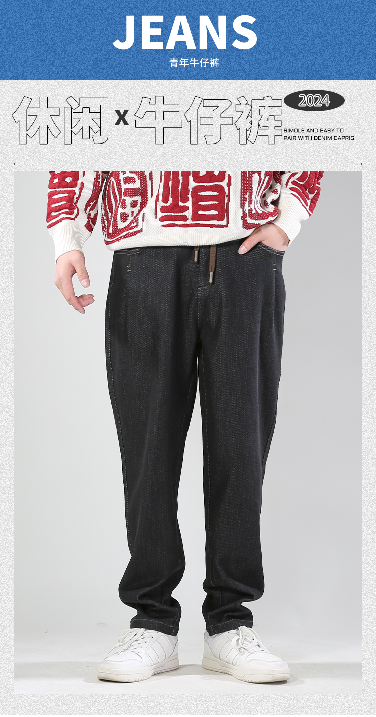 DRONKOO 2024 抽绳松紧腰前插袋压褶两枣底磨毛普洗厚牛仔长裤