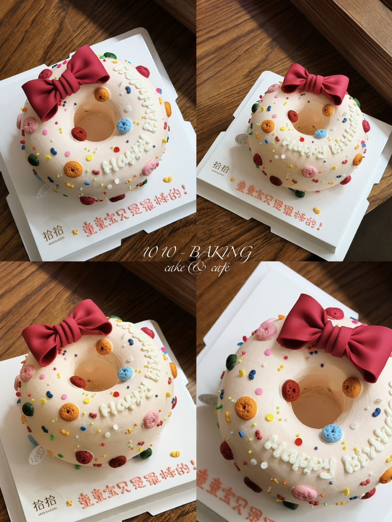 「是甜甜圈蛋糕呀!」造型甜甜圈·翻糖蝴蝶结·100%动物奶油(附图8寸·提前3天预订)
