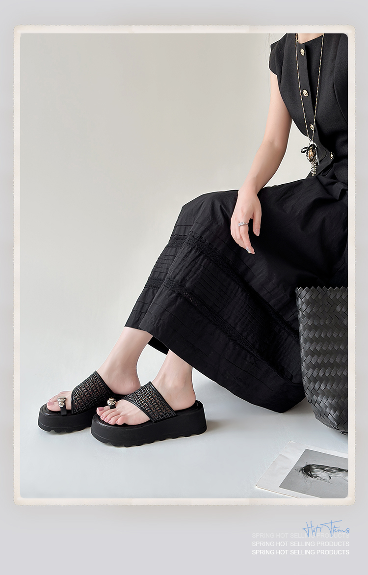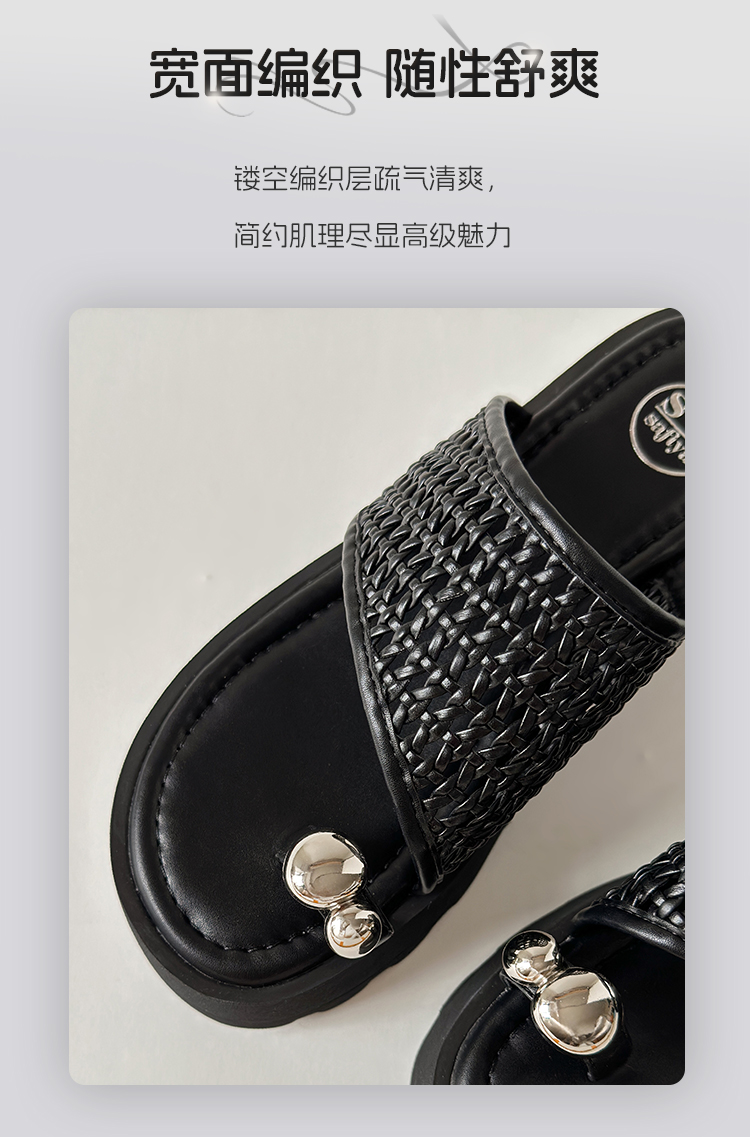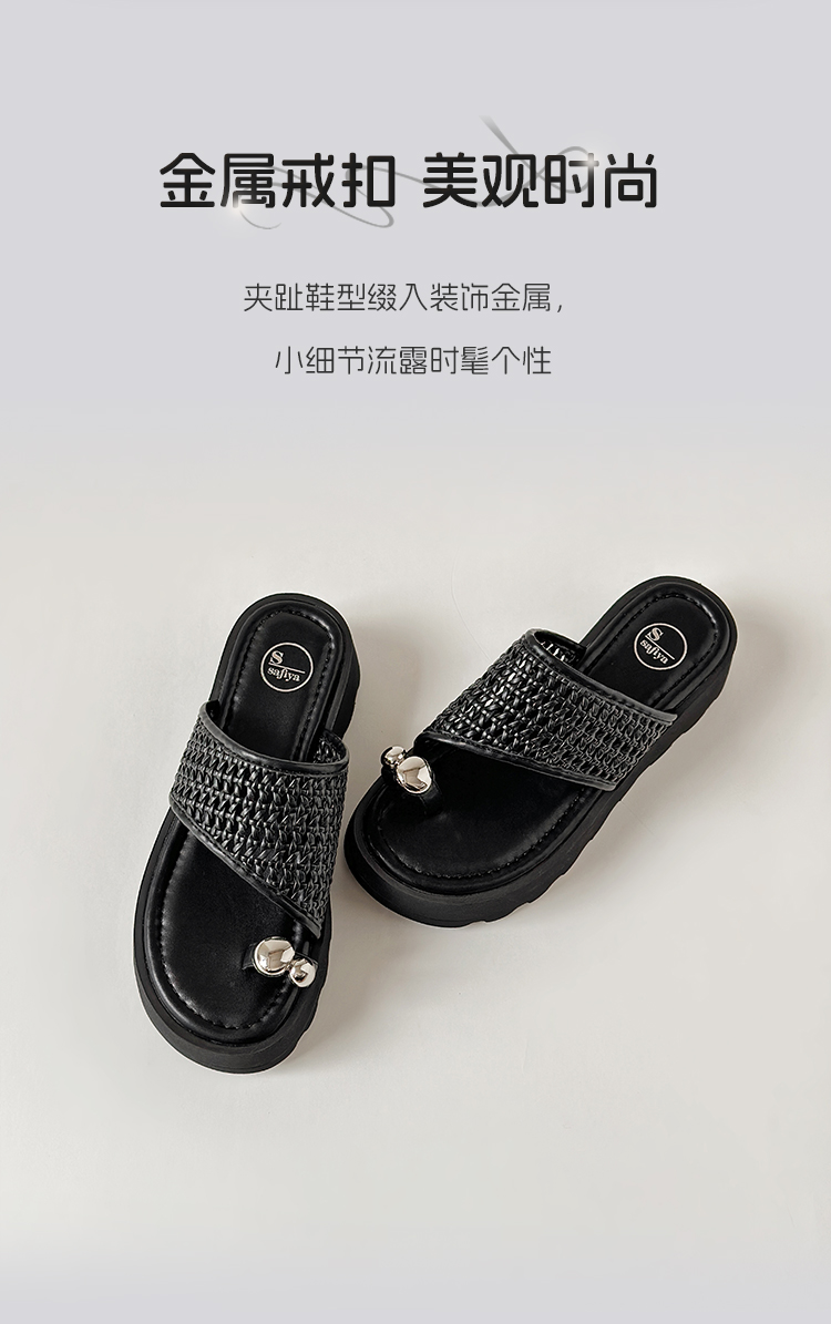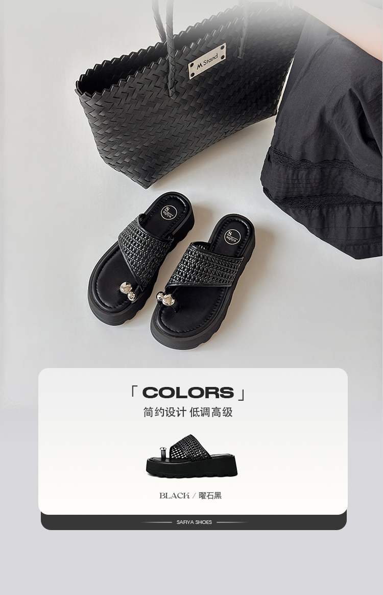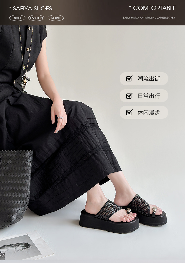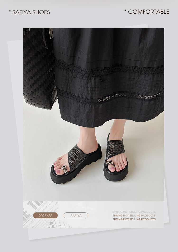预售7天|Safiya/索菲娅2025夏季厚底编织透气百搭外穿镂空套趾凉拖鞋夏季厚底编织透气百搭外穿镂空套趾凉拖鞋SFD2110411