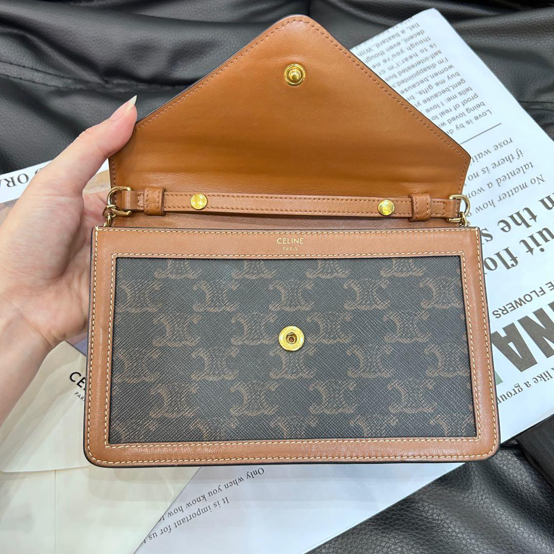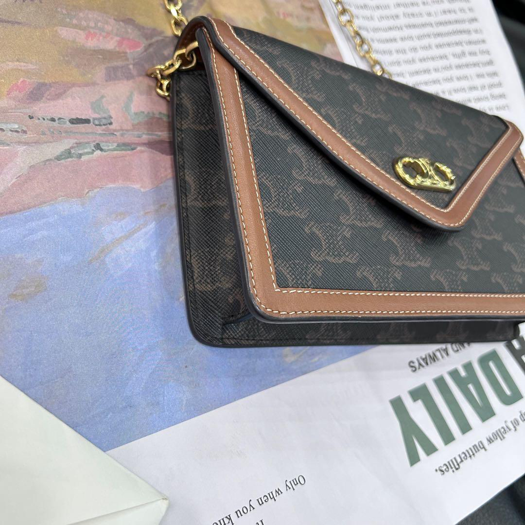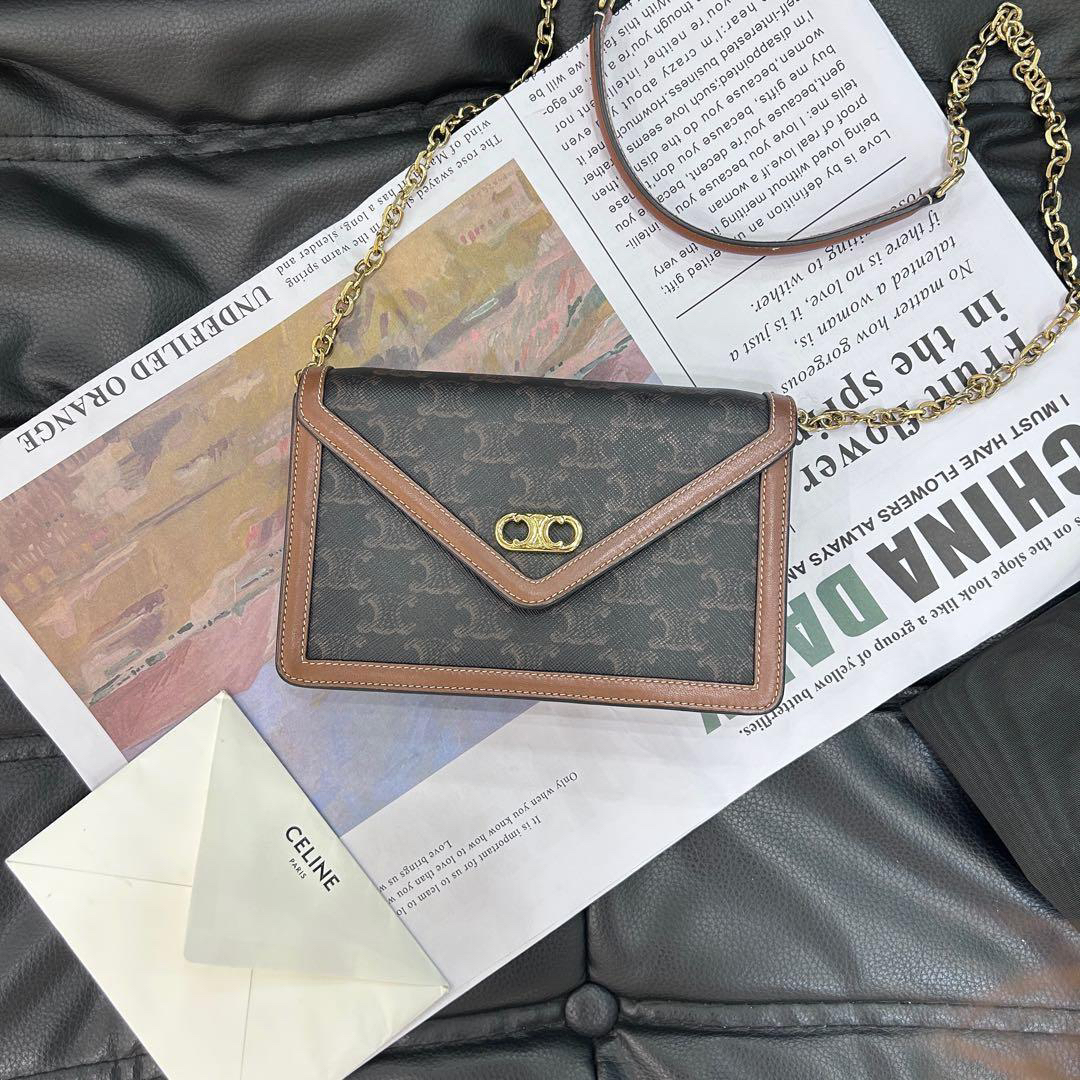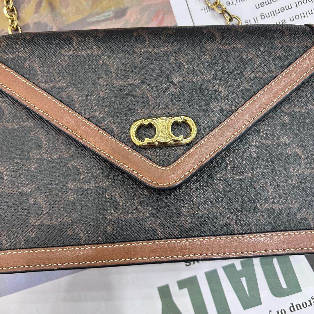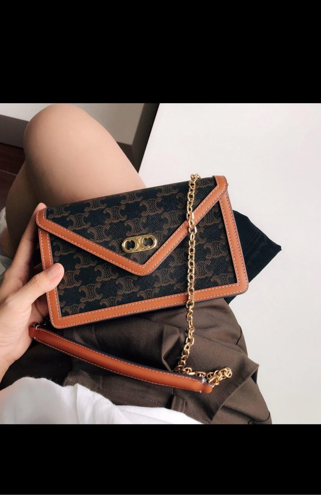 正品二手 Celine Triompheg 凯旋门 老花拼皮 信封包🎣97新 20x13 配件:票 说明书。21年秋冬款