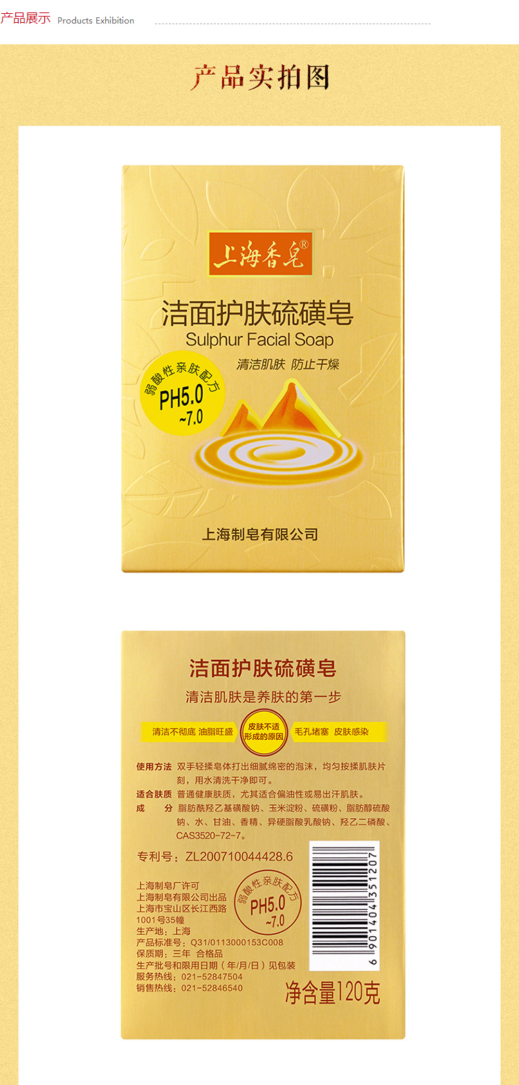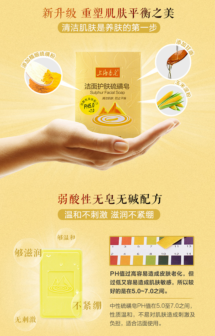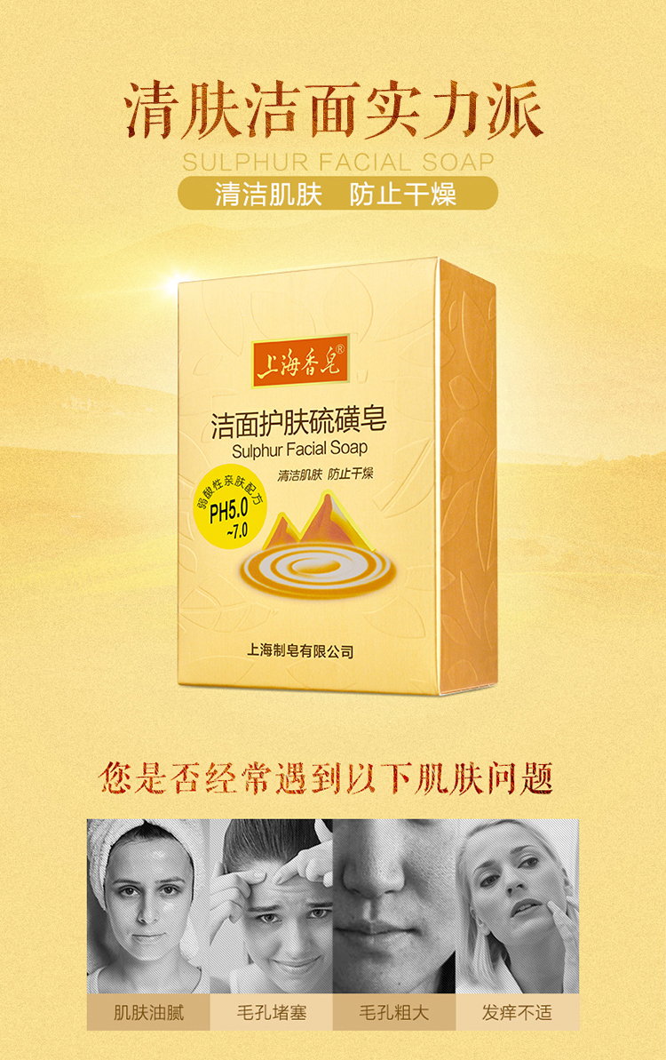 上海香皂 洁面护肤硫磺皂120g 控油抑菌驱螨净痘洁面洗发沐浴香皂(带皂盒)