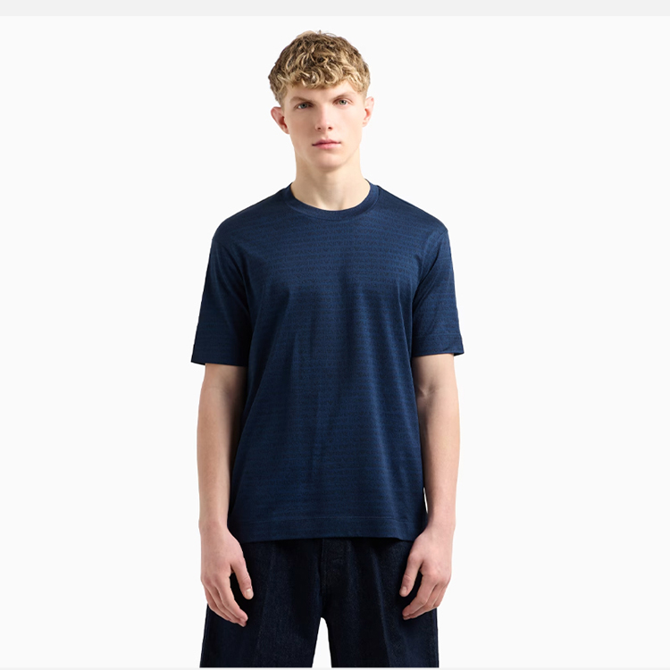 EMPORIO ARMANI 阿玛尼 男士全身提花字母针织圆领短袖T恤 深蓝色 EM000787 AF12916 FB224