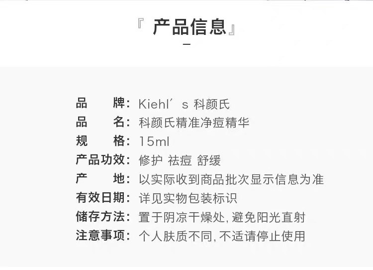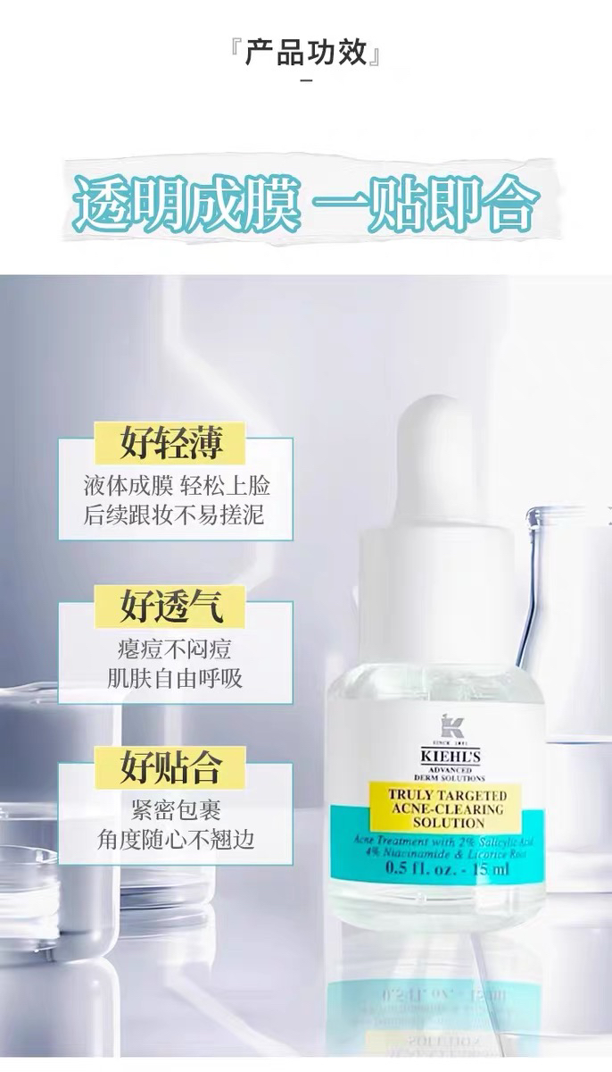 【海关保税直发】Kiehl's/科颜氏液体痘痘贴水杨酸祛痘精华15ml-快速瘪痘褪红-会员5折