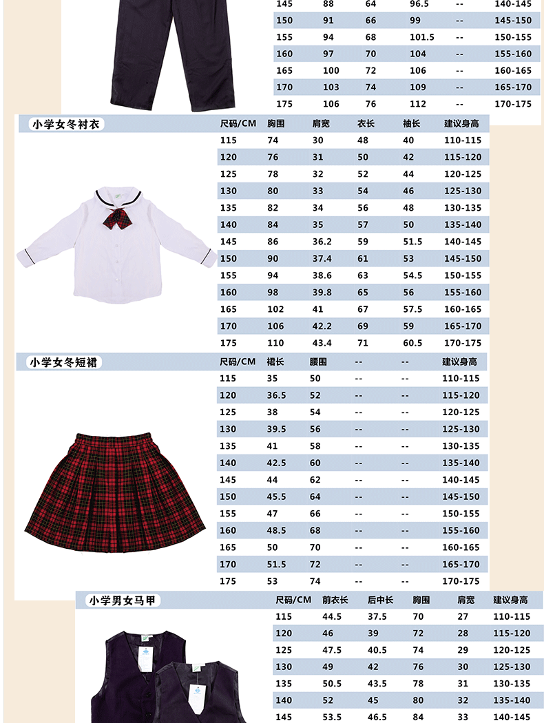 广州市第七中学实验(小学部)男女生夏秋冬季校服(运动服+礼仪服)