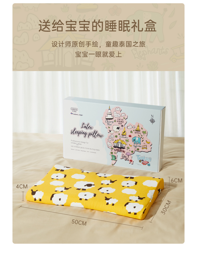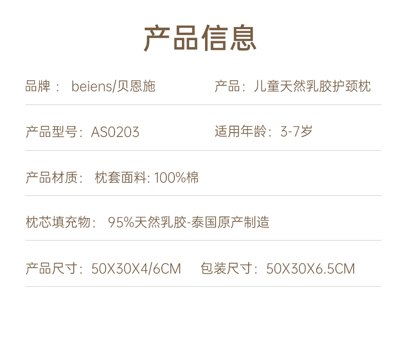 贝恩施儿童泰国进口乳胶枕芯3-7岁婴儿夏季透气枕头幼儿园安抚枕