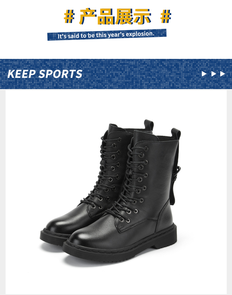 西村名物牛皮马丁靴加绒保暖中筒低跟靴子2019冬季新款X29DC44701