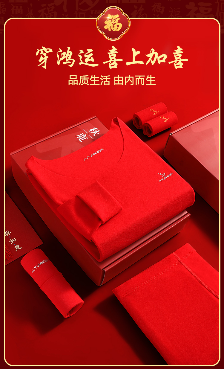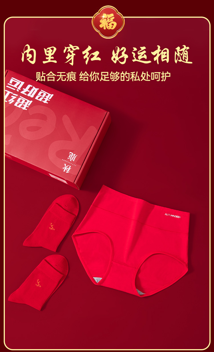 【清仓捡漏】【女士磨毛套装+内裤+福袜】【M-2XL】【秋鹿】女士本命年礼盒套装