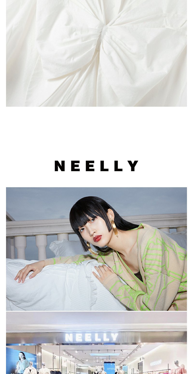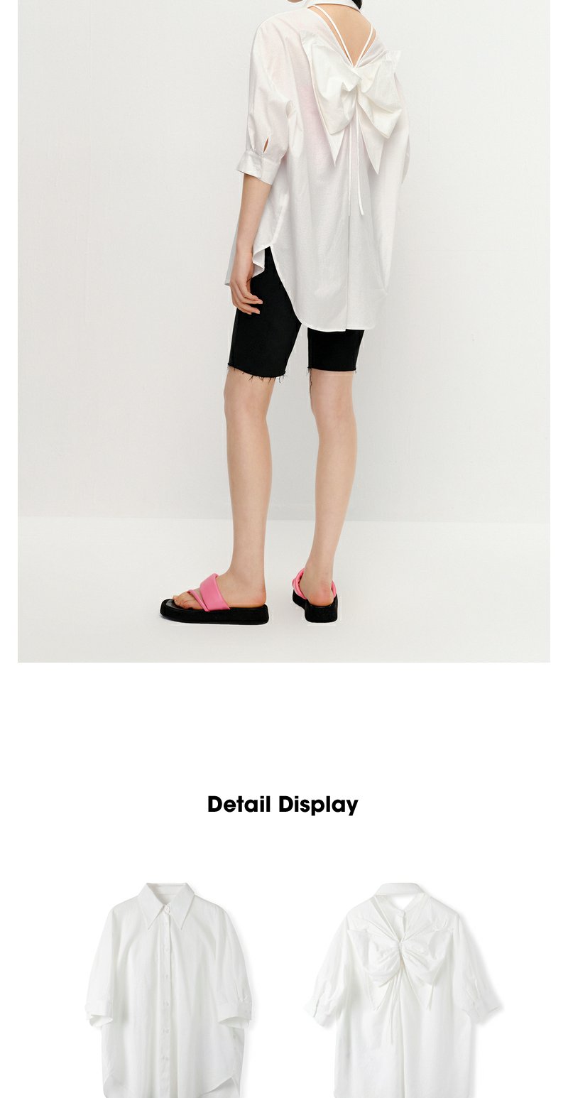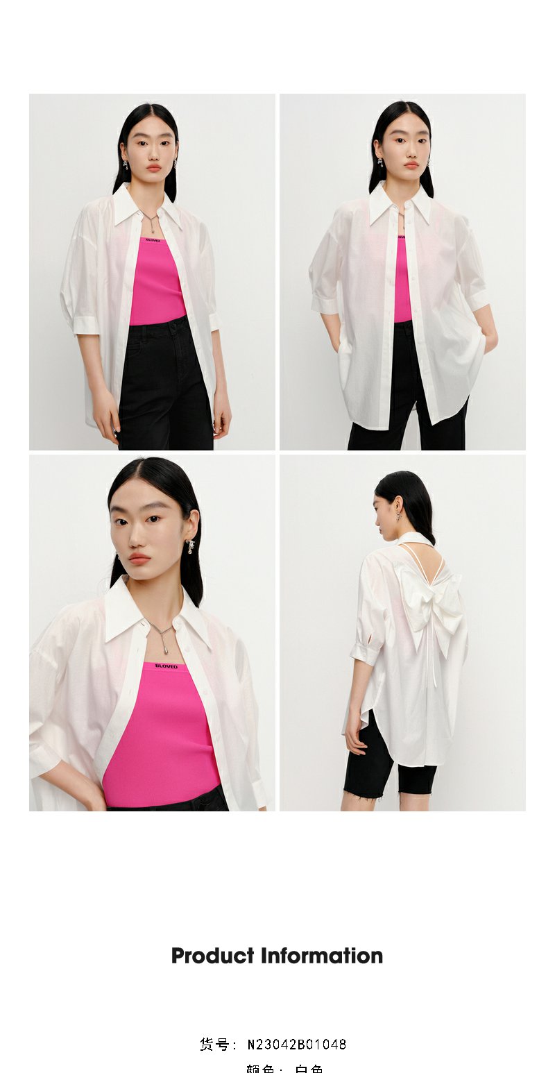 NEELLY纳俪商场同款白色衬衫女五分袖心机露背大蝴蝶结纯棉上衣夏N23042B01048