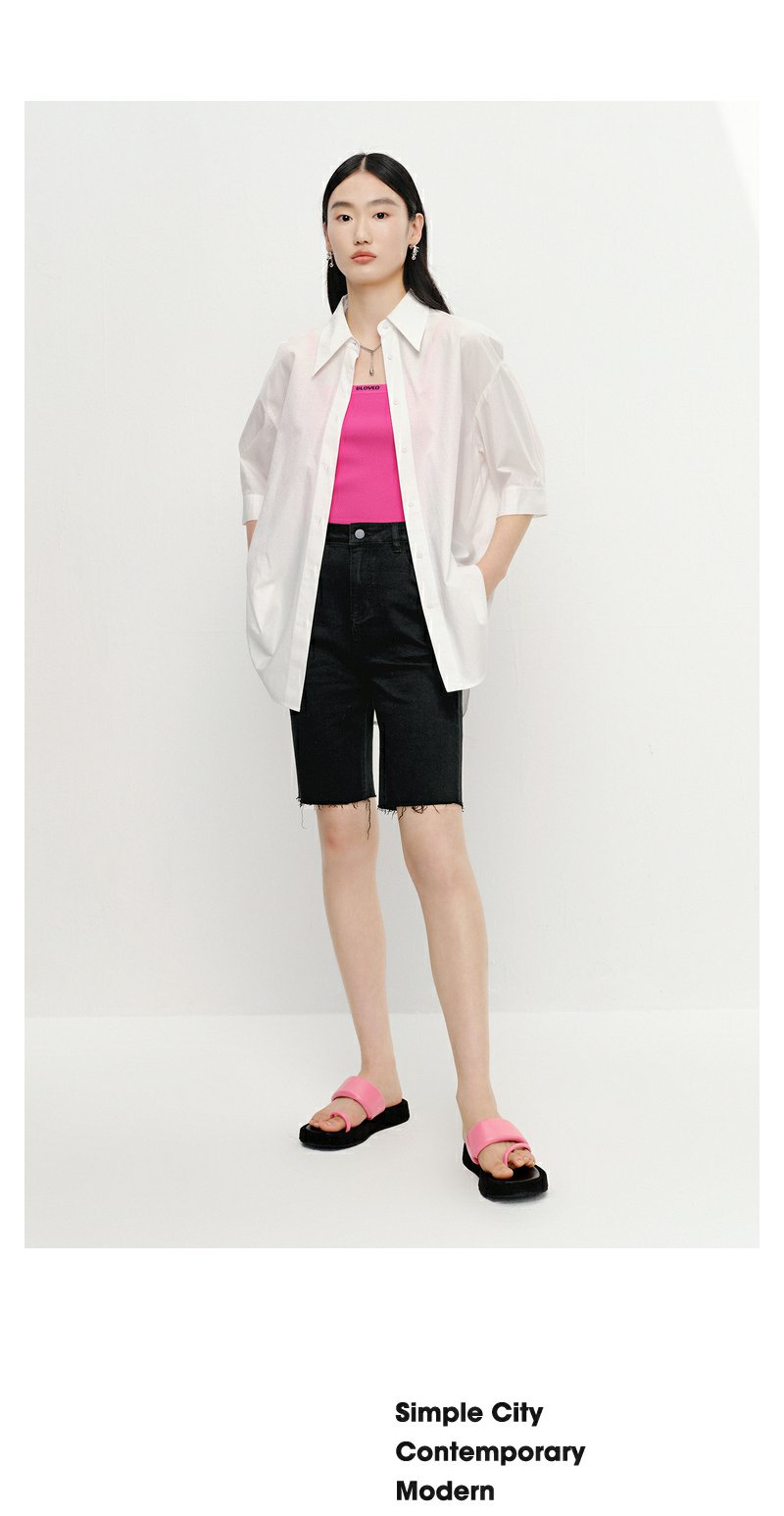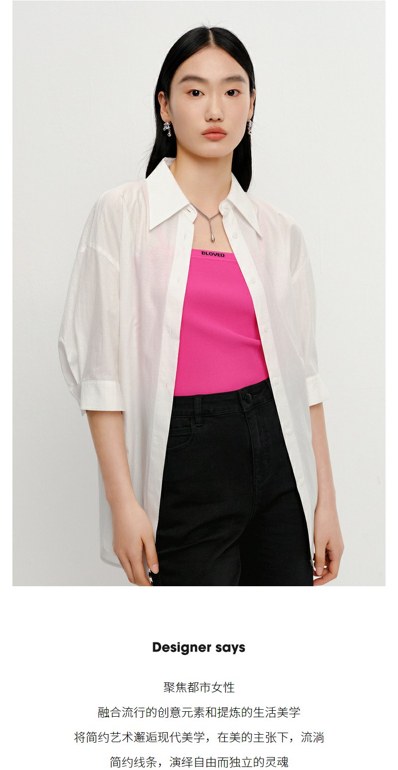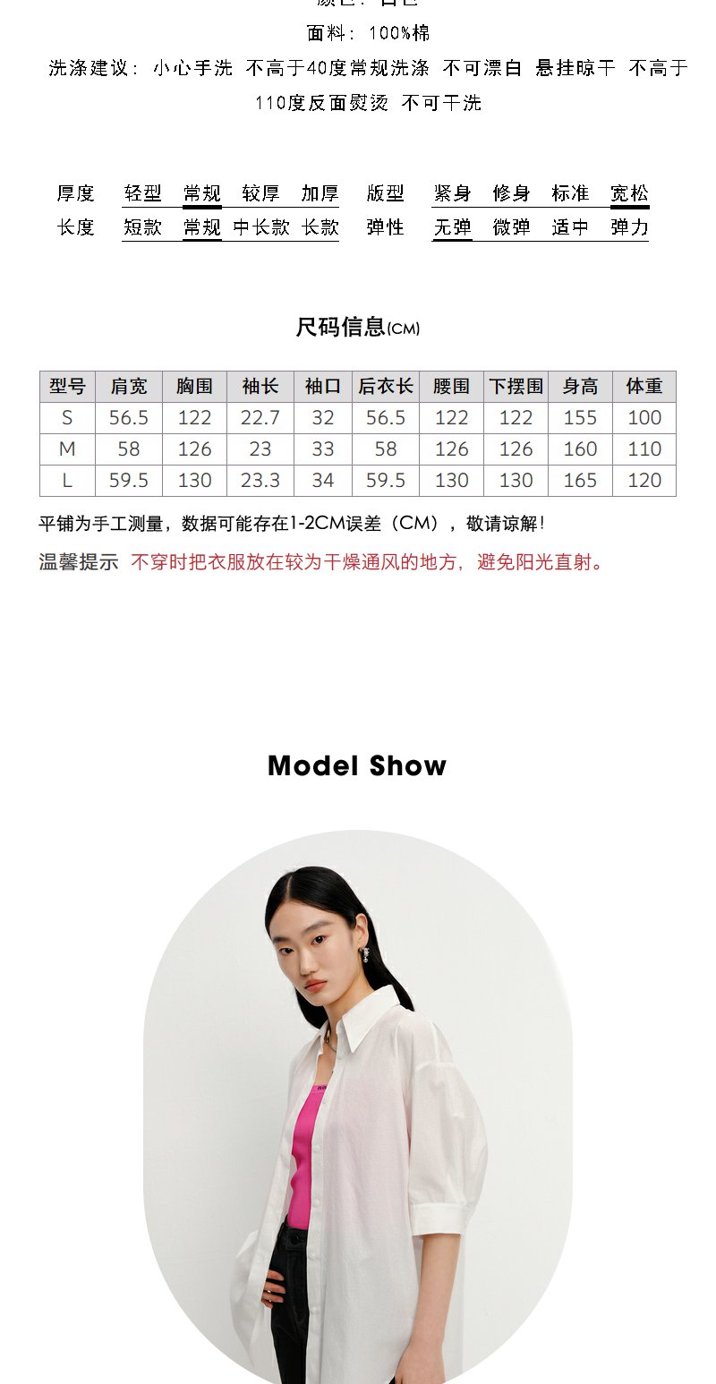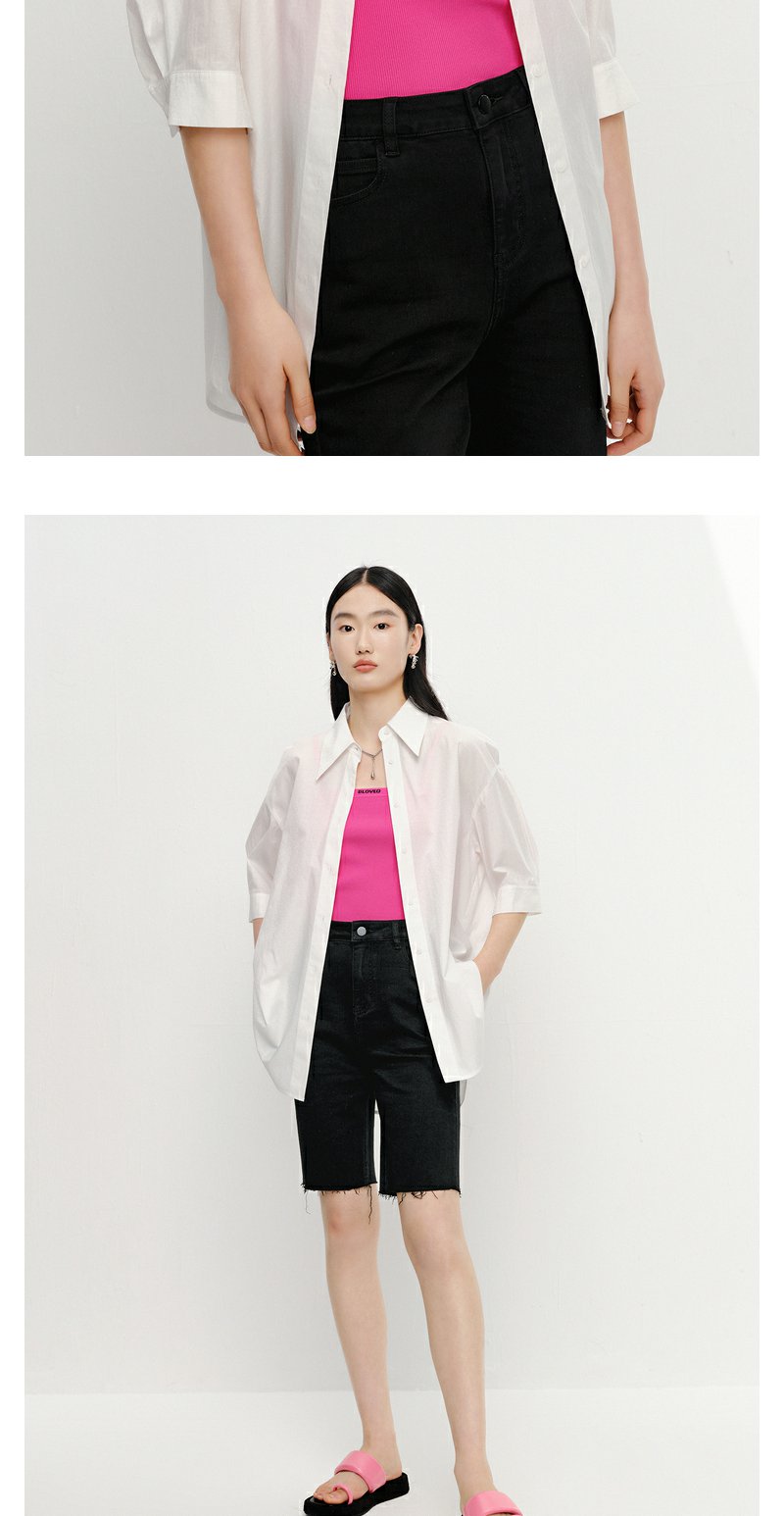 NEELLY纳俪商场同款白色衬衫女五分袖心机露背大蝴蝶结纯棉上衣夏N23042B01048