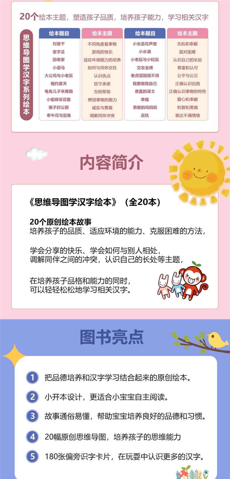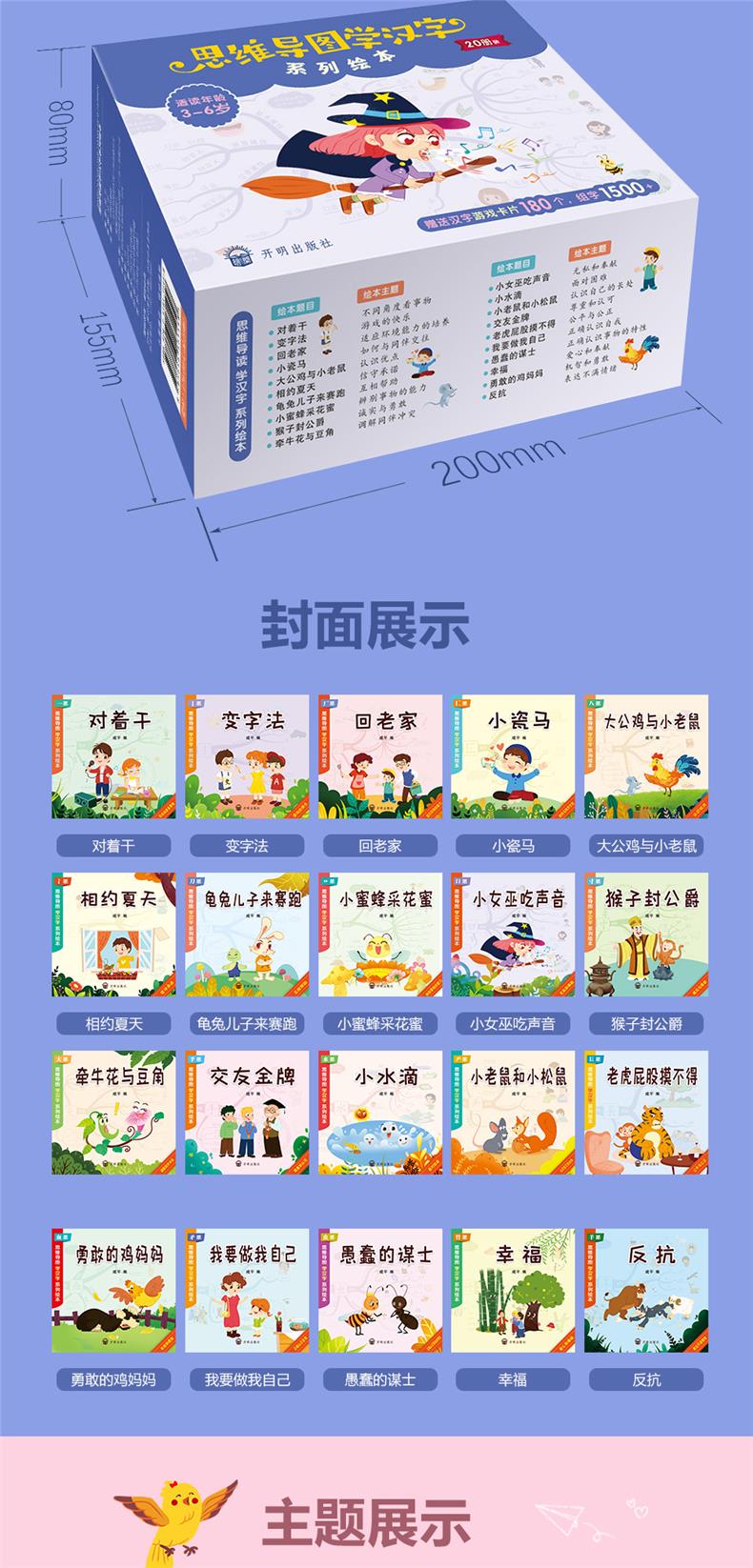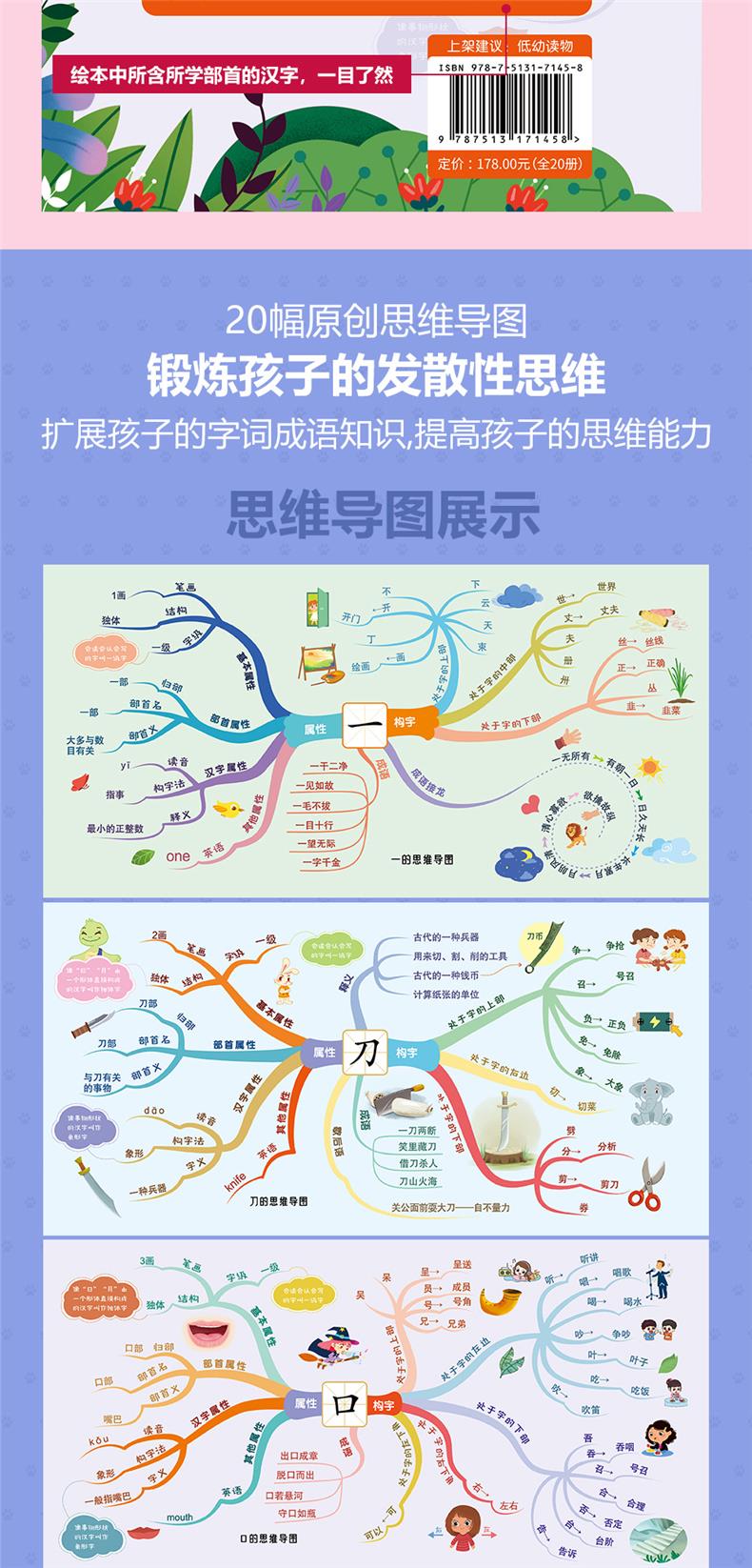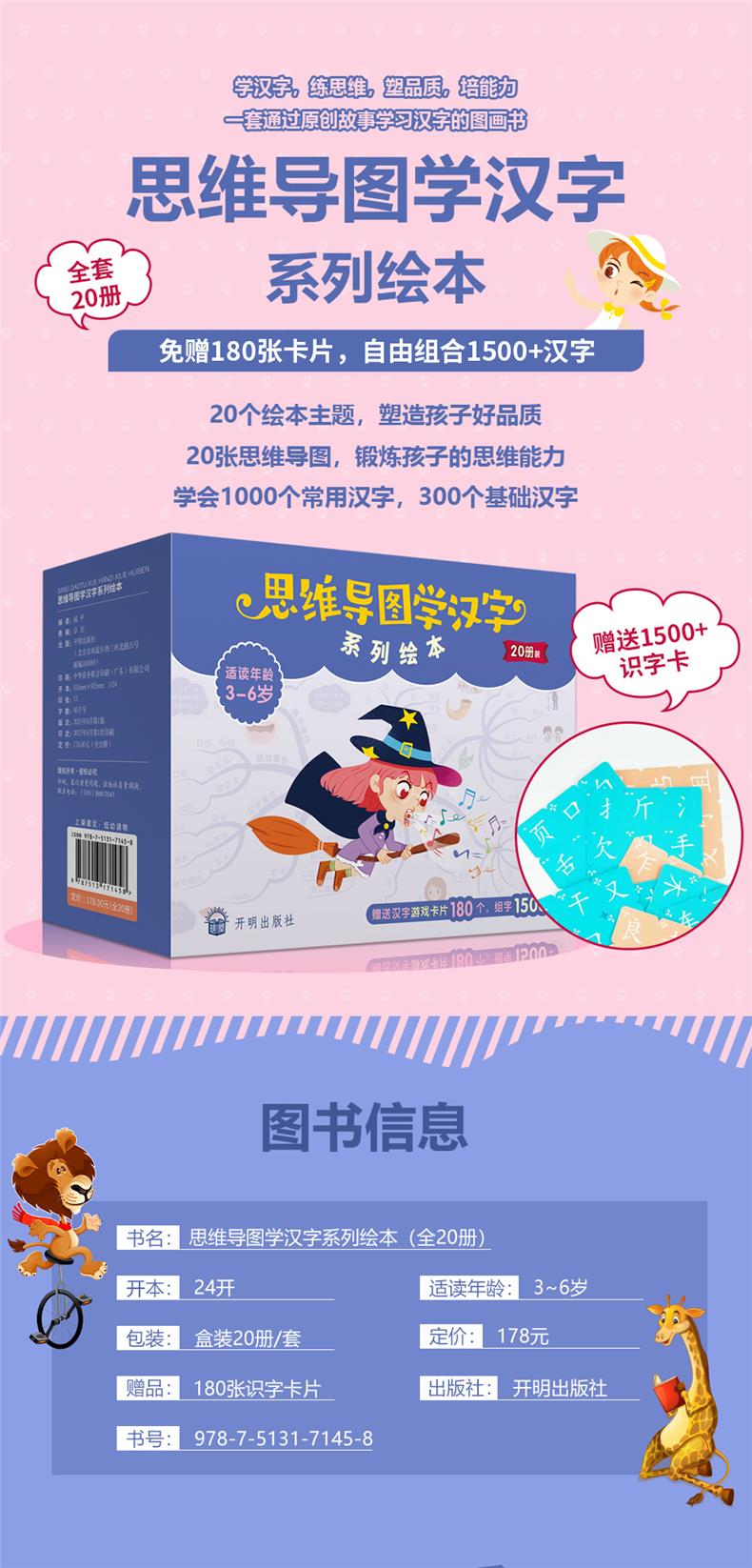 思维导图学汉字系列绘本全20册亲子共读游戏互动图画故事书3-6岁儿童读物亲子绘本读物识字卡片畅销书