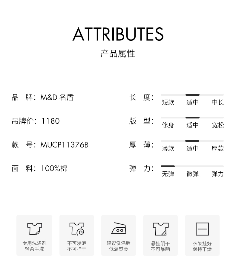 | 男装品牌: M&D/名盾 | 面料: 长绒棉 |
