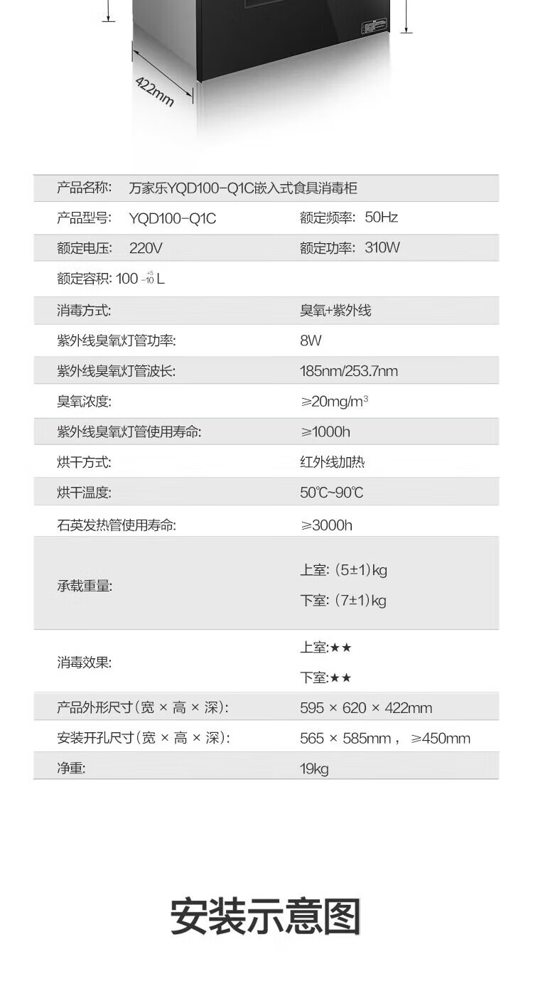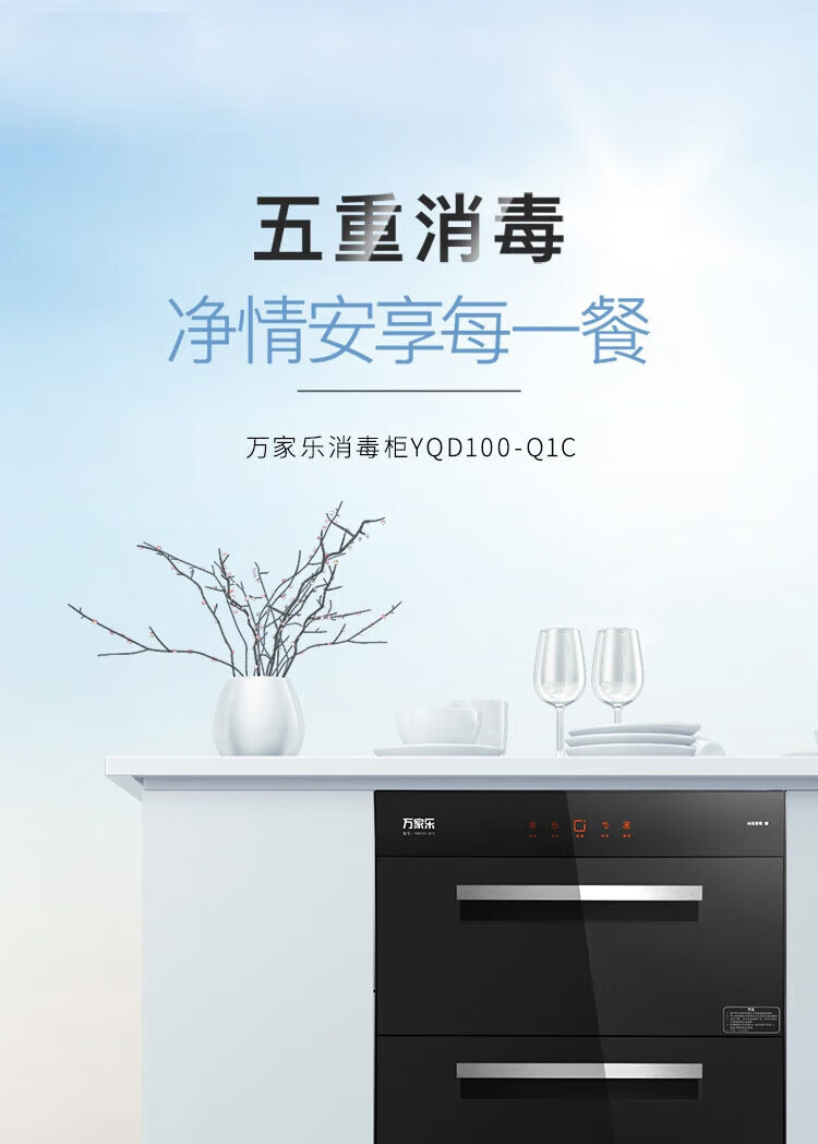 万家乐100L/Q2C(M)用嵌入式大容量三重消毒杀菌二星级食具消毒柜Q1C低温 二星级 100L Q2CM【粤湾】【双十一】