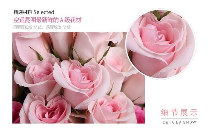 精品粉玫瑰共29枝(粉佳人粉玫瑰17枝+水粉色苏醒玫瑰12枝)