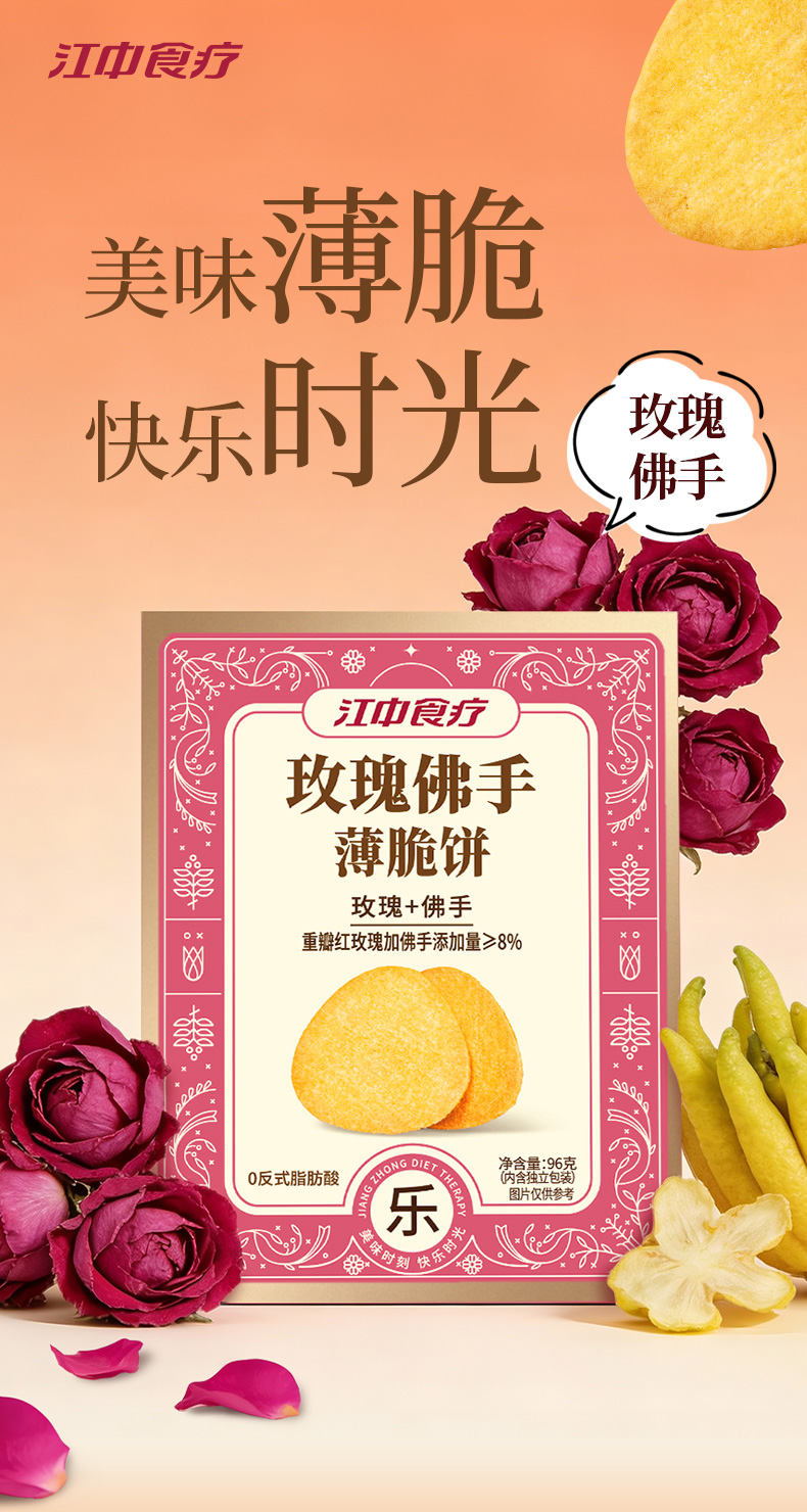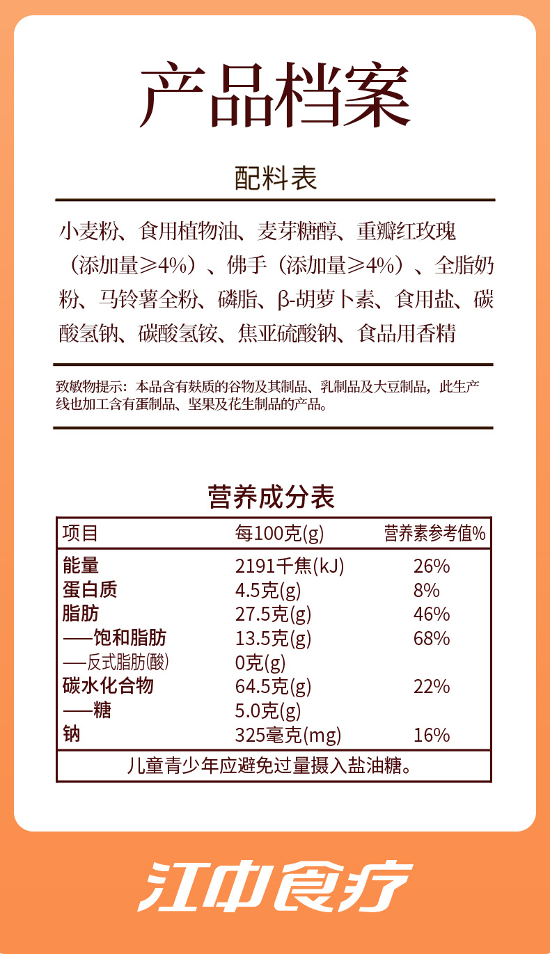 【玫瑰佛手】江中食疗玫瑰佛手薄脆饼干96g 生产日期2025年12月,保质期12个月