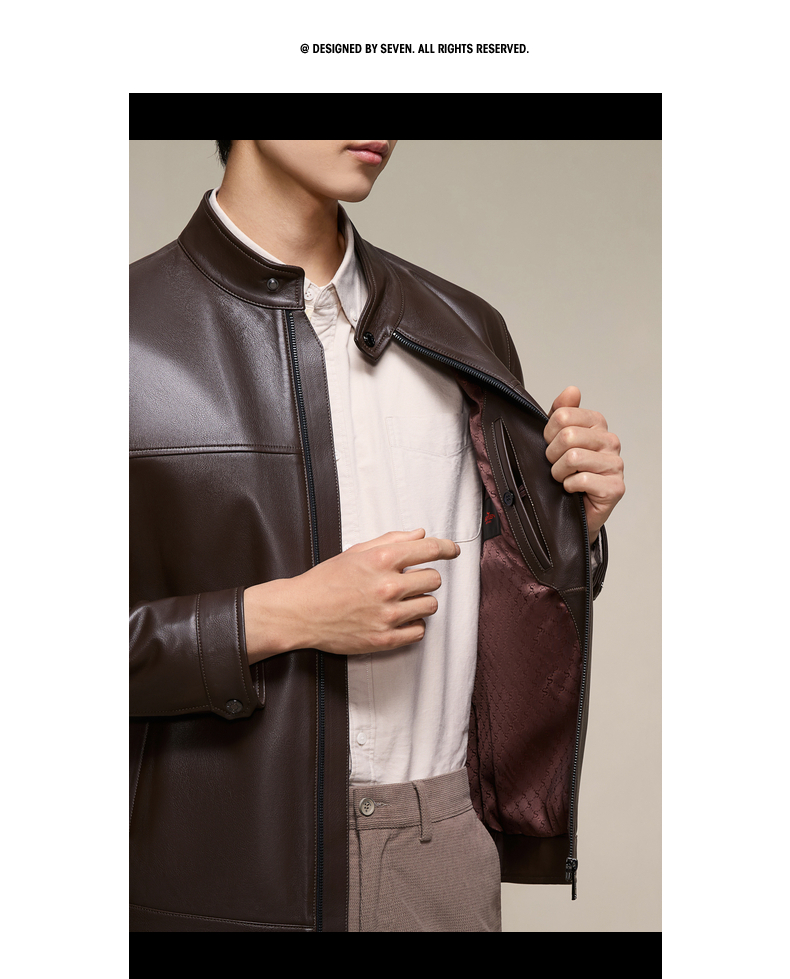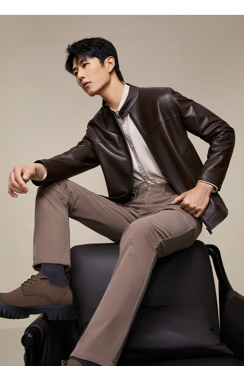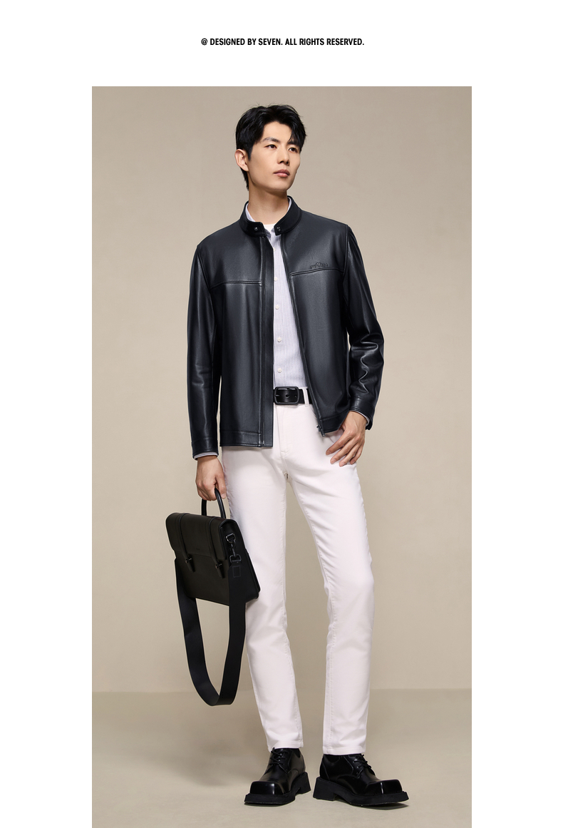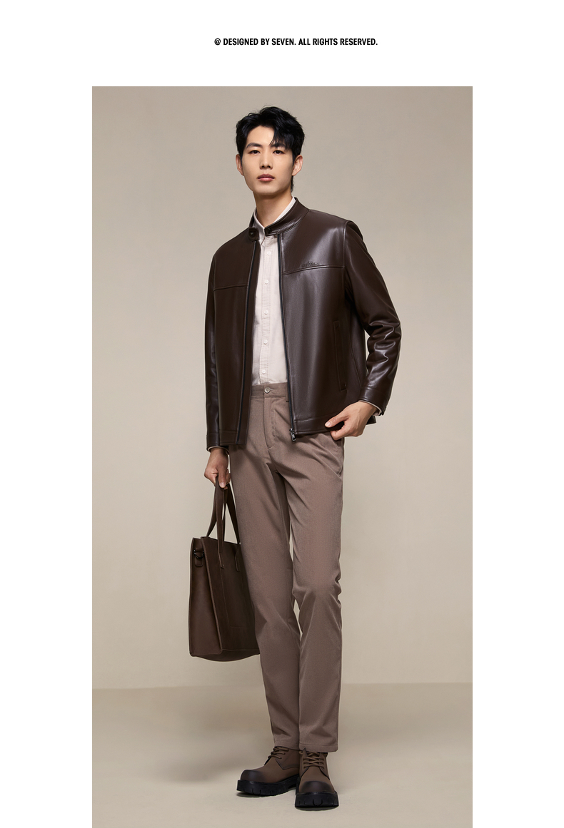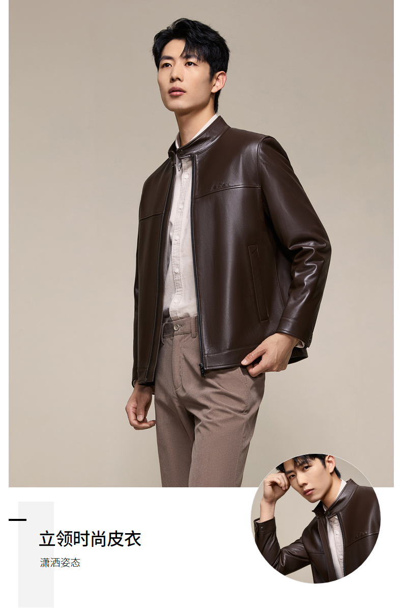 【绵羊皮】柒牌男装2025秋季新品皮夹克立领潮流商务真皮皮衣129J70230