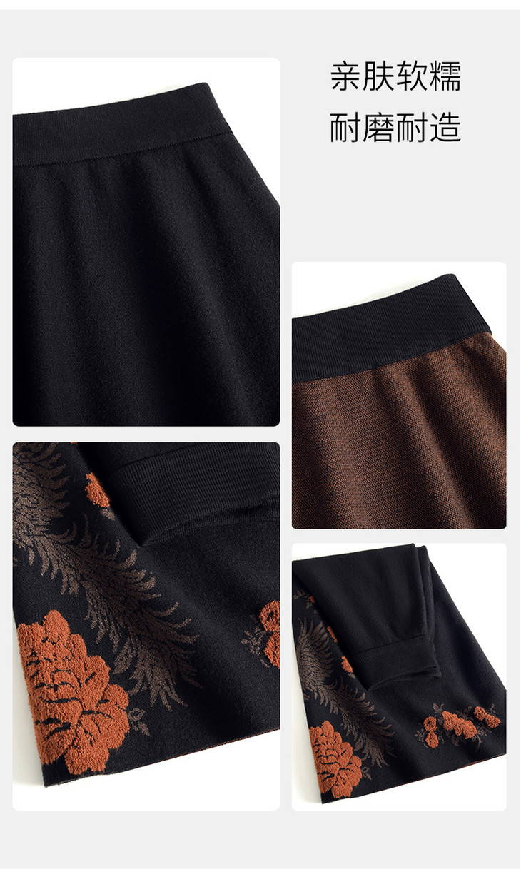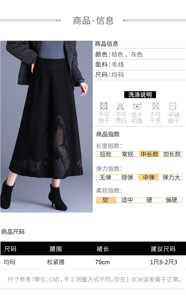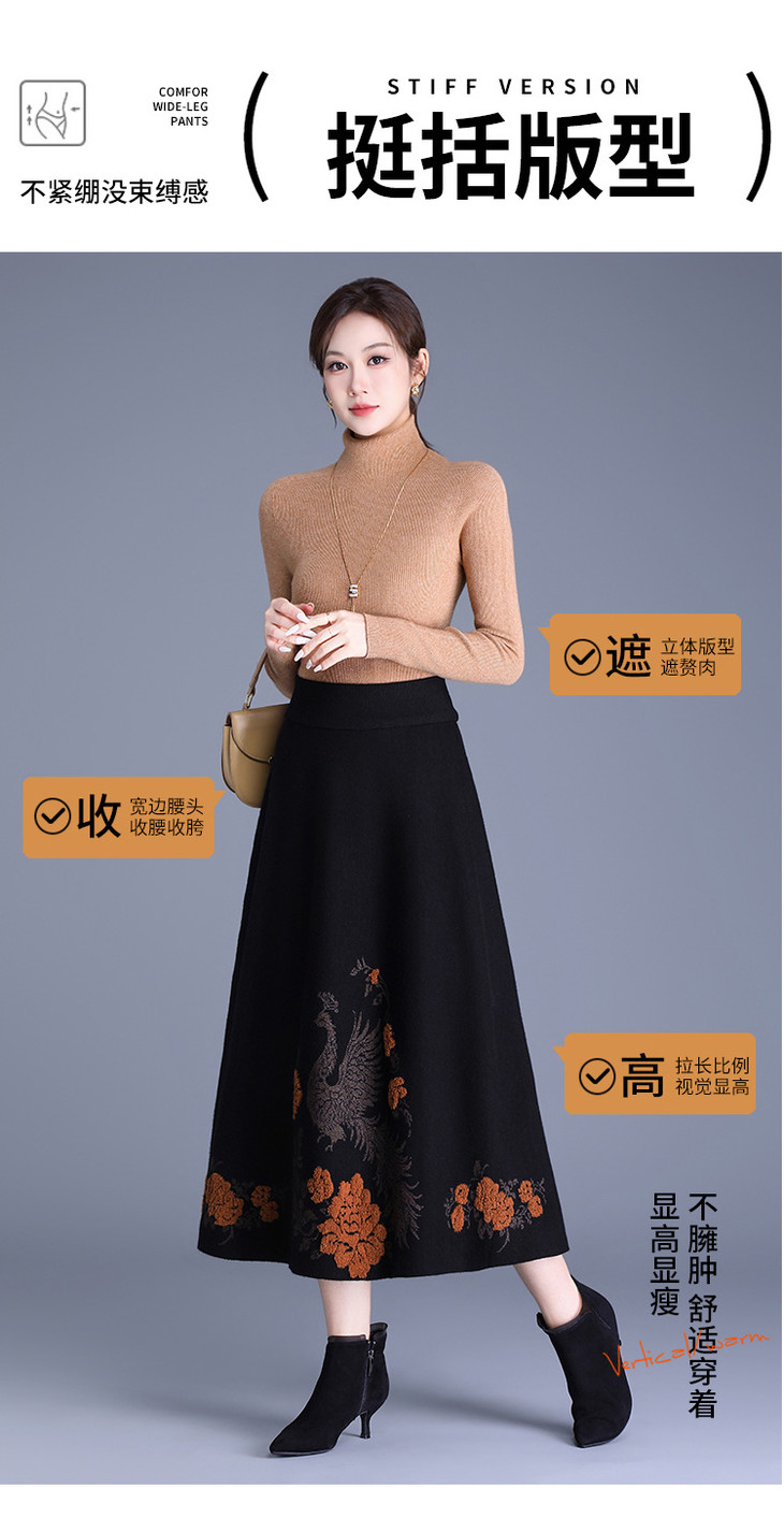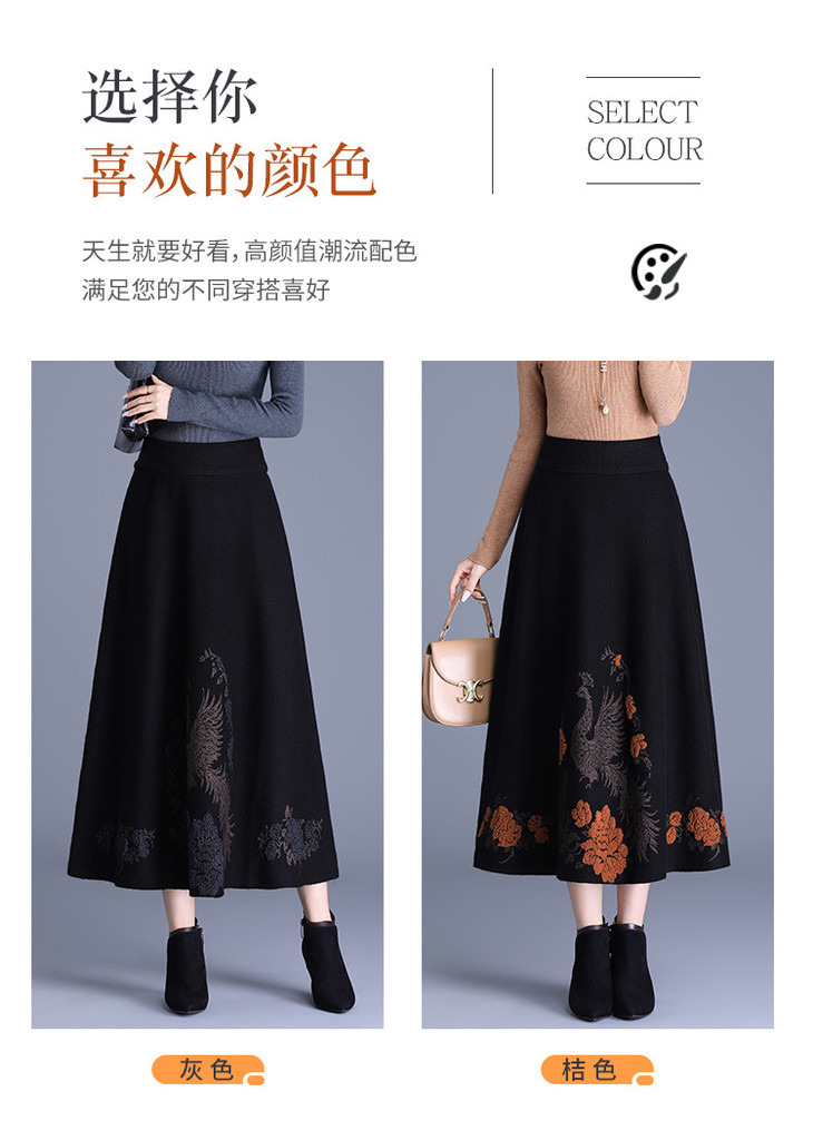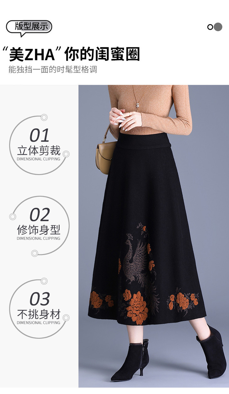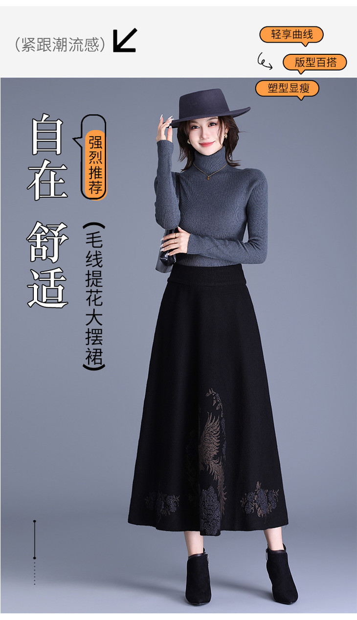 垂坠感针织印花大摆裙,松紧腰通勤高腰A字裙MYX-LXWT-5827-L