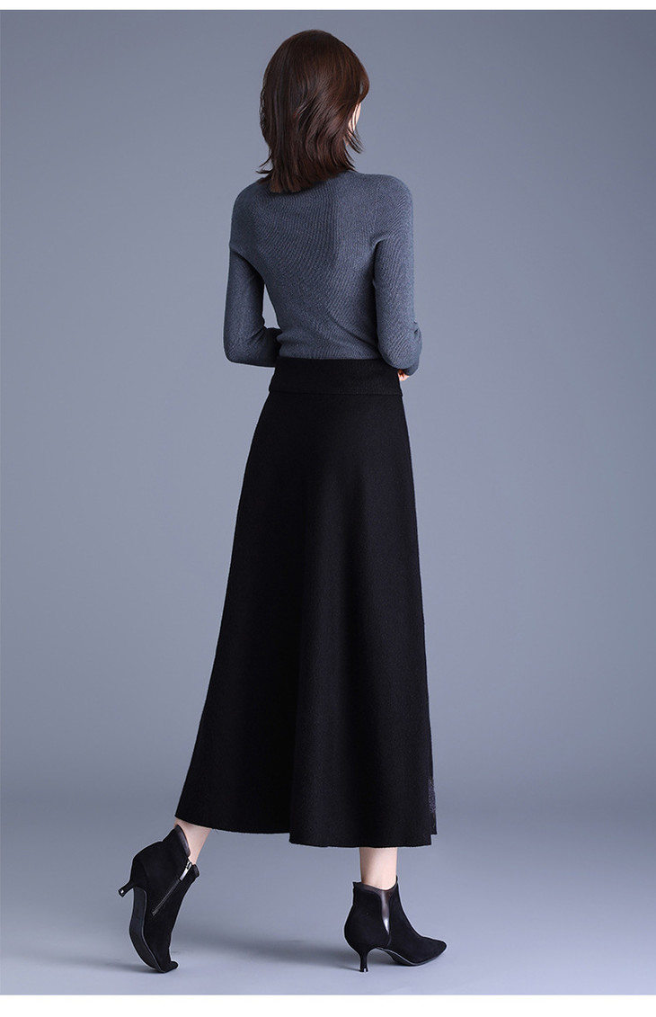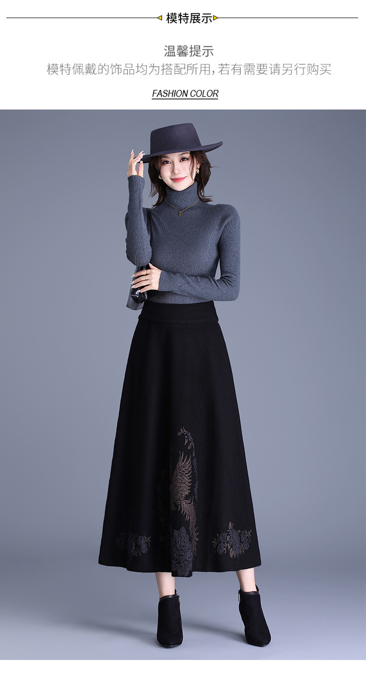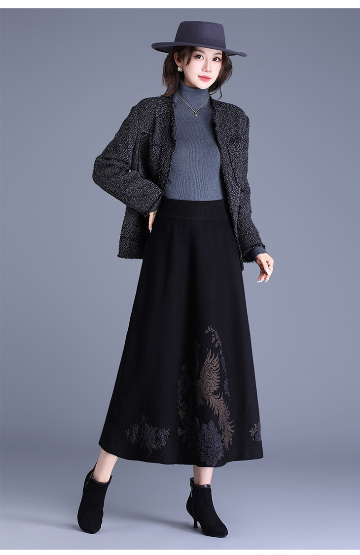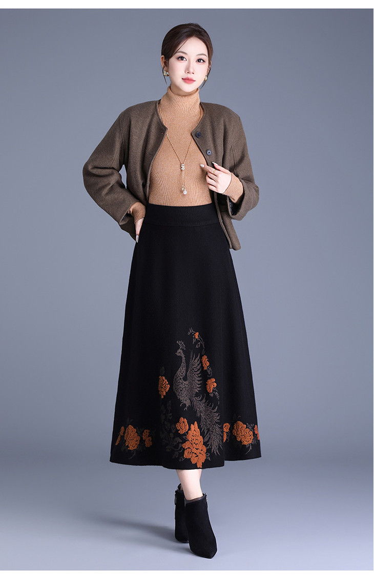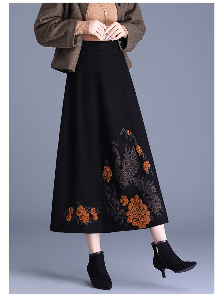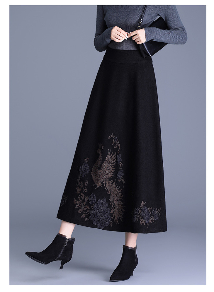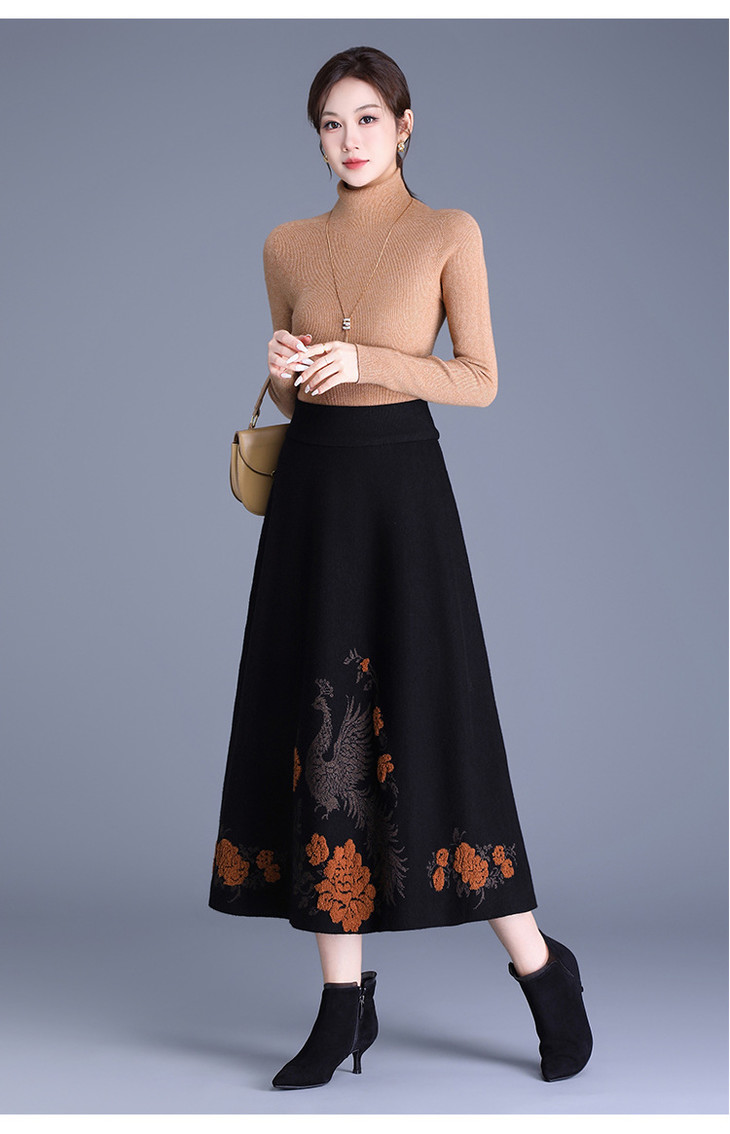 垂坠感针织印花大摆裙,松紧腰通勤高腰A字裙MYX-LXWT-5827-L
