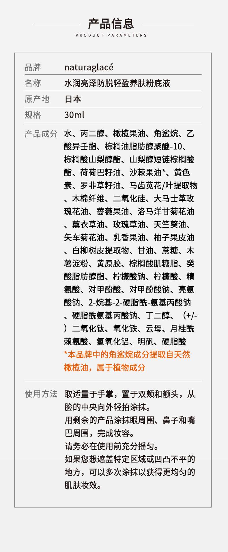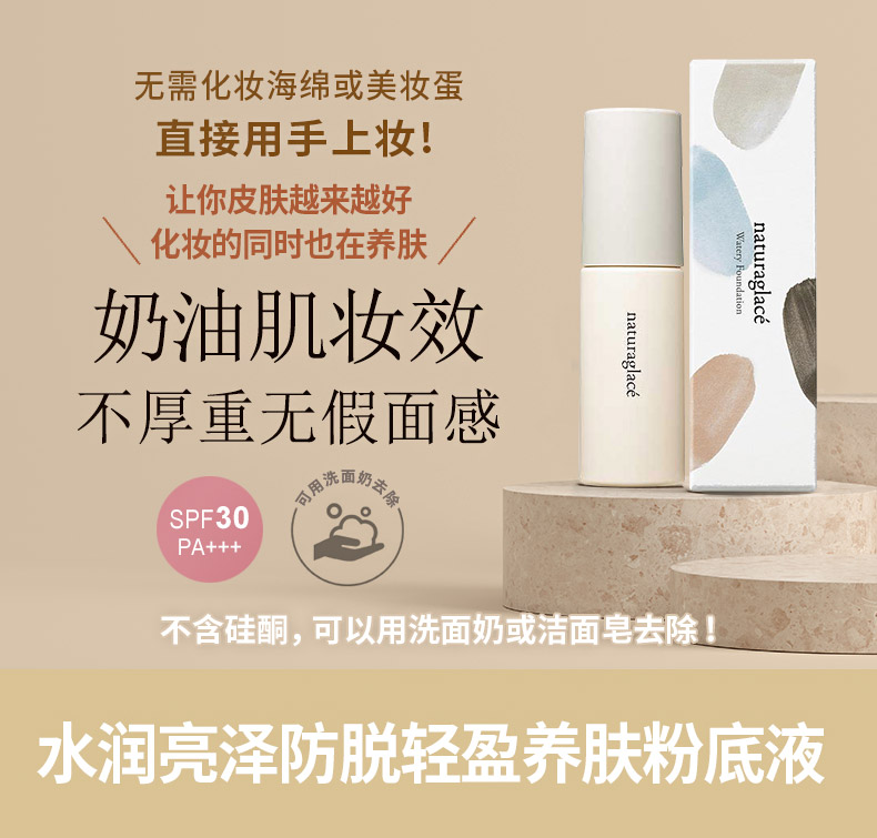 NaturaGlace有机天然水润亮泽轻盈养肤粉底液孕妇彩妆水润光感粉底液30ml