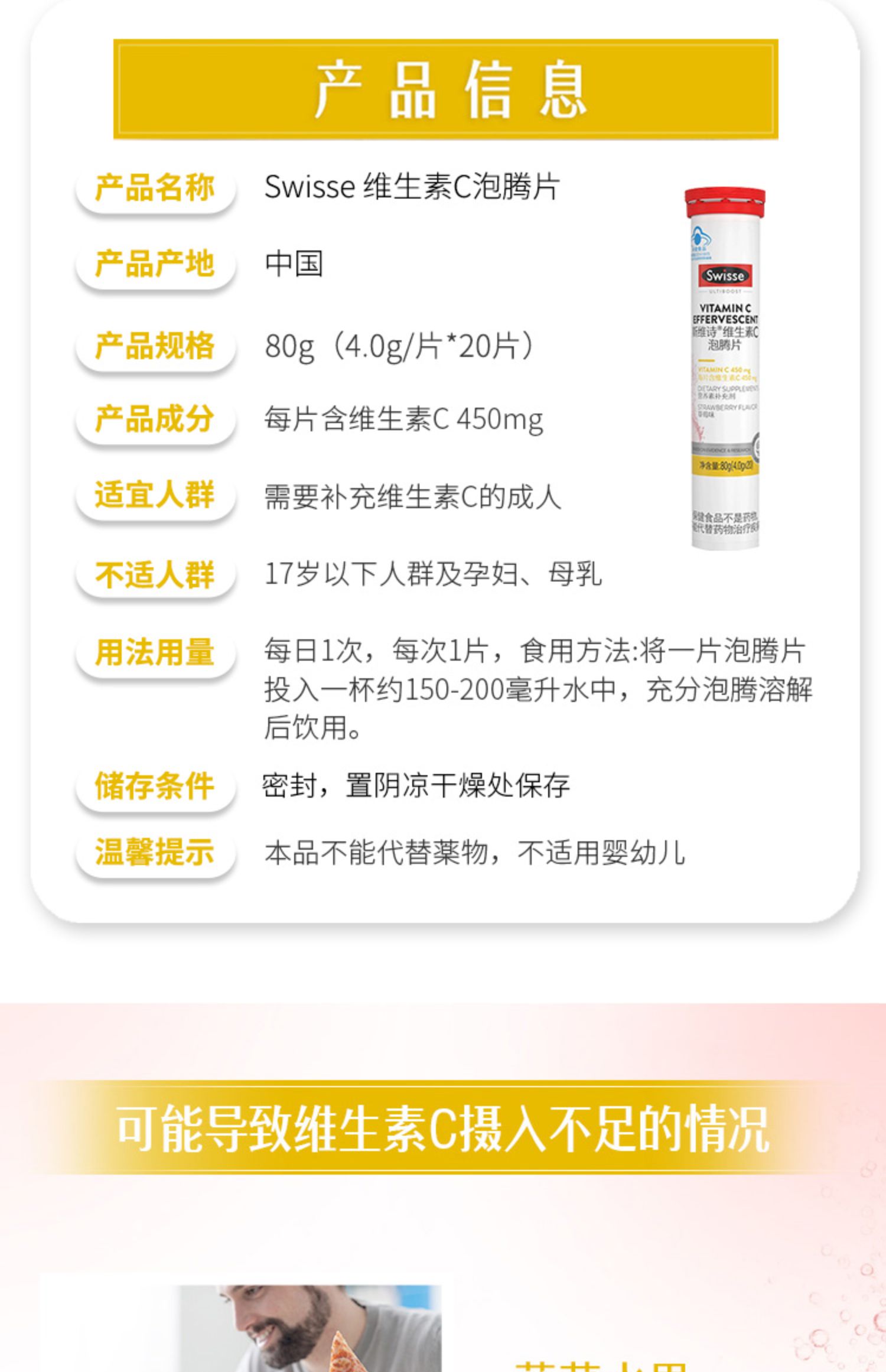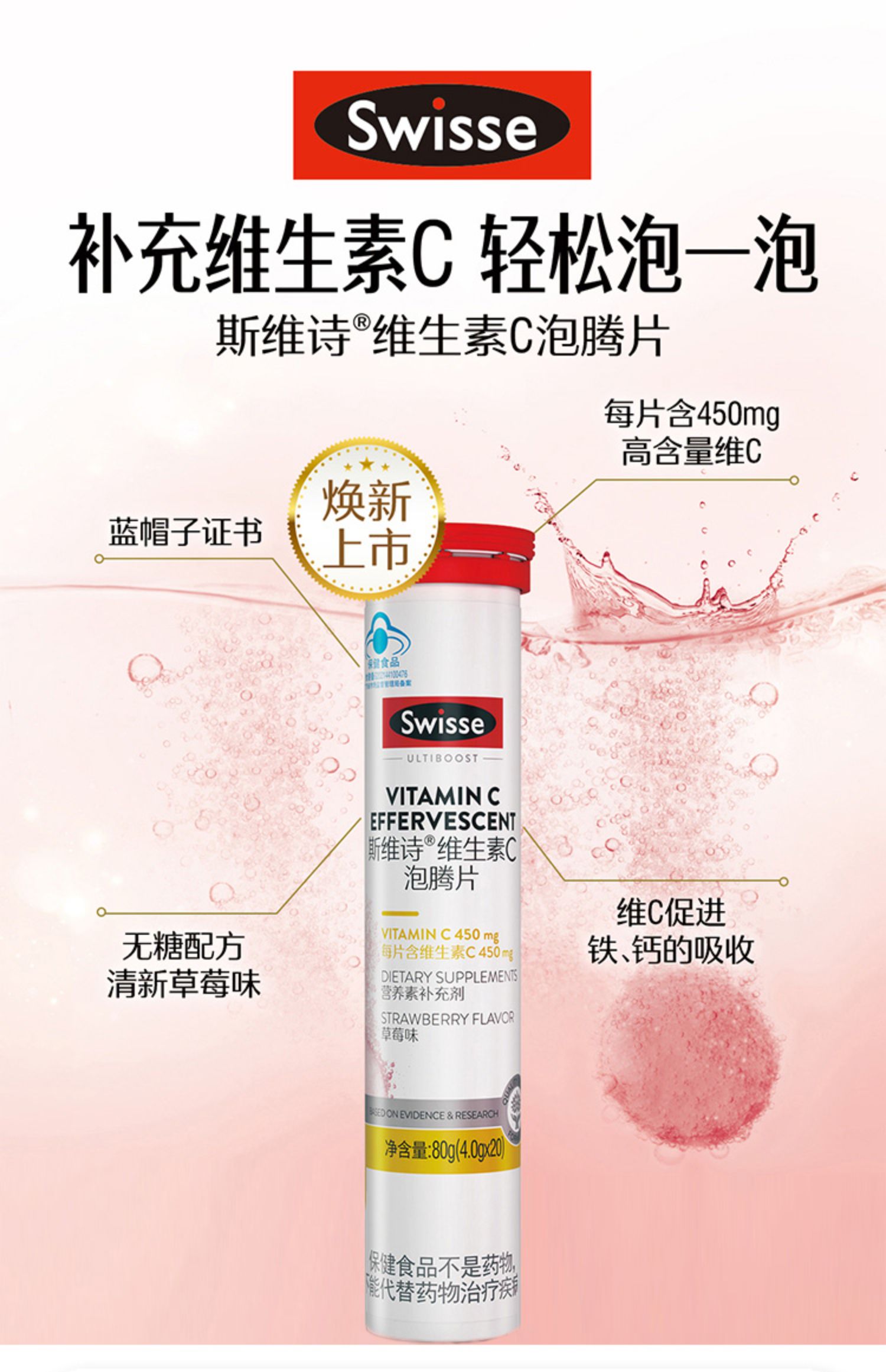 【1件包邮】Swisse斯维诗®维生素C泡腾片20片装/170019 清新草莓味 新疆/西藏/海南/内蒙/云南/宁夏/甘肃/青海/港澳台不发货
