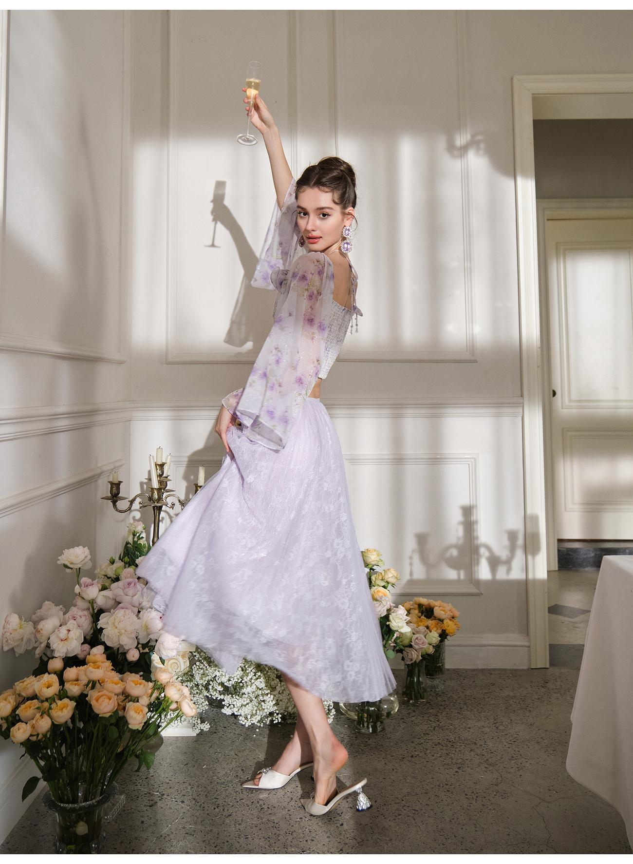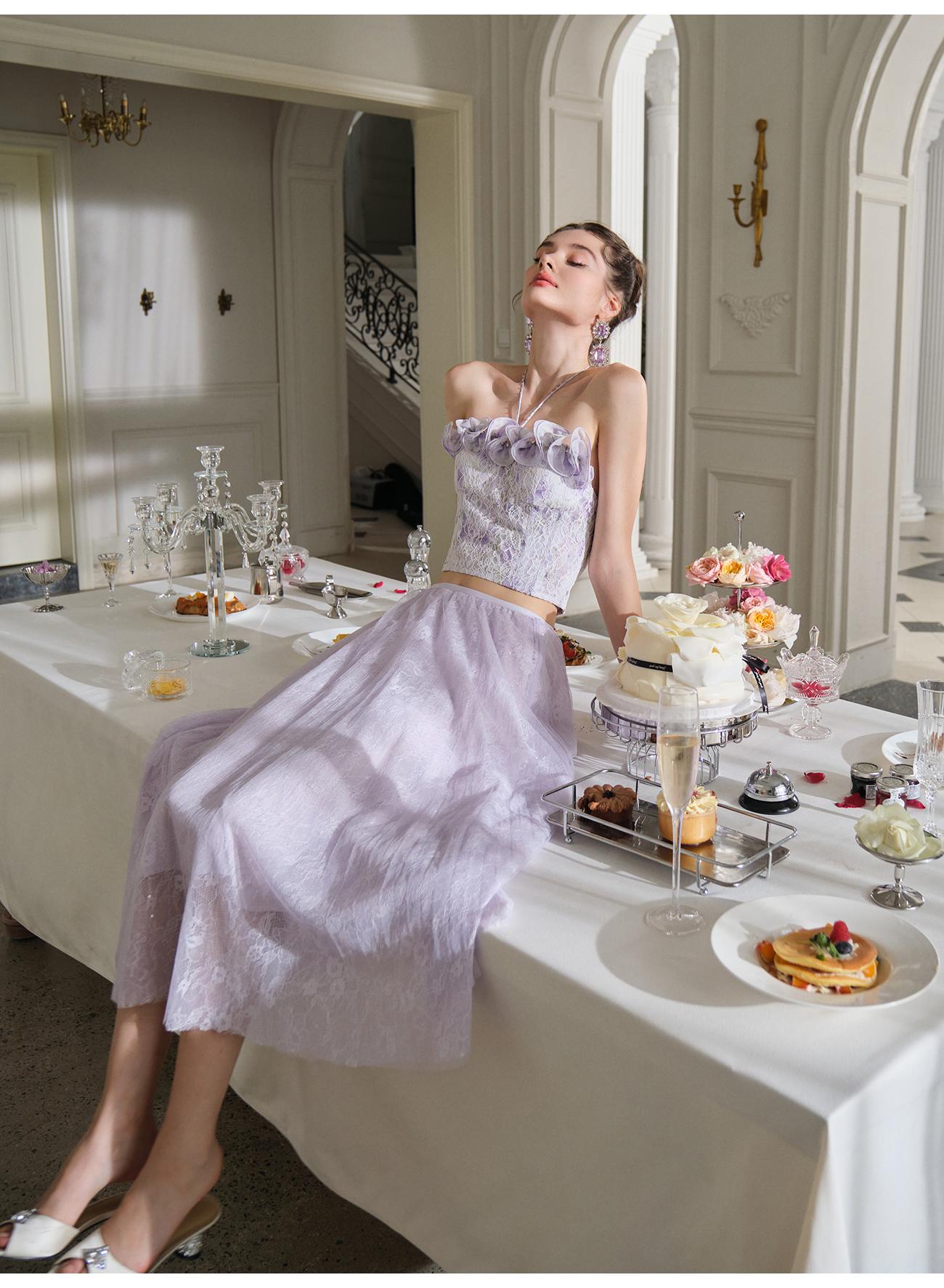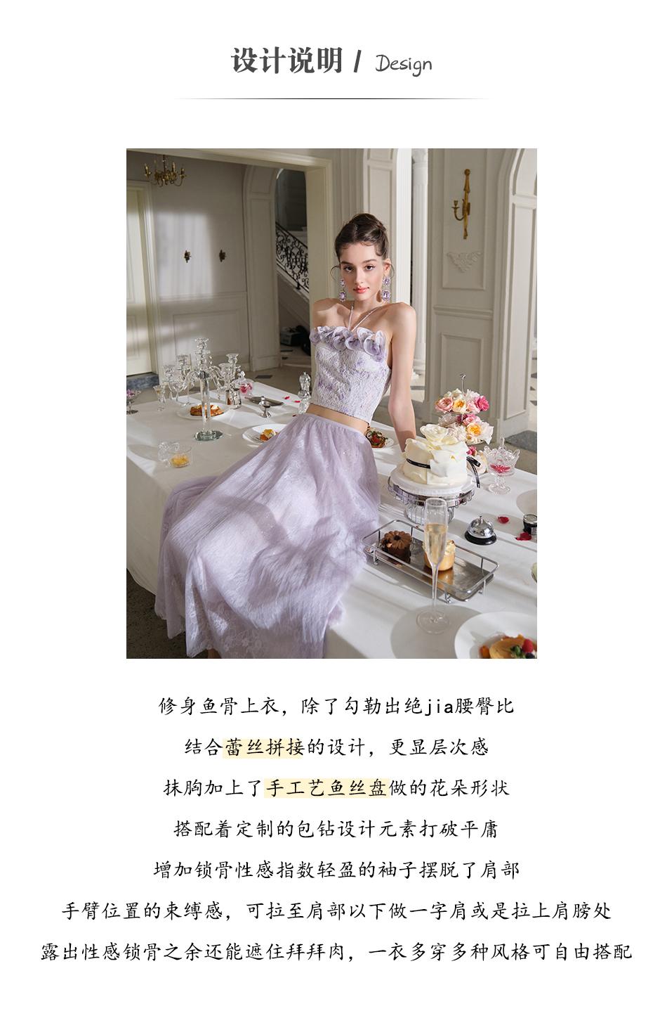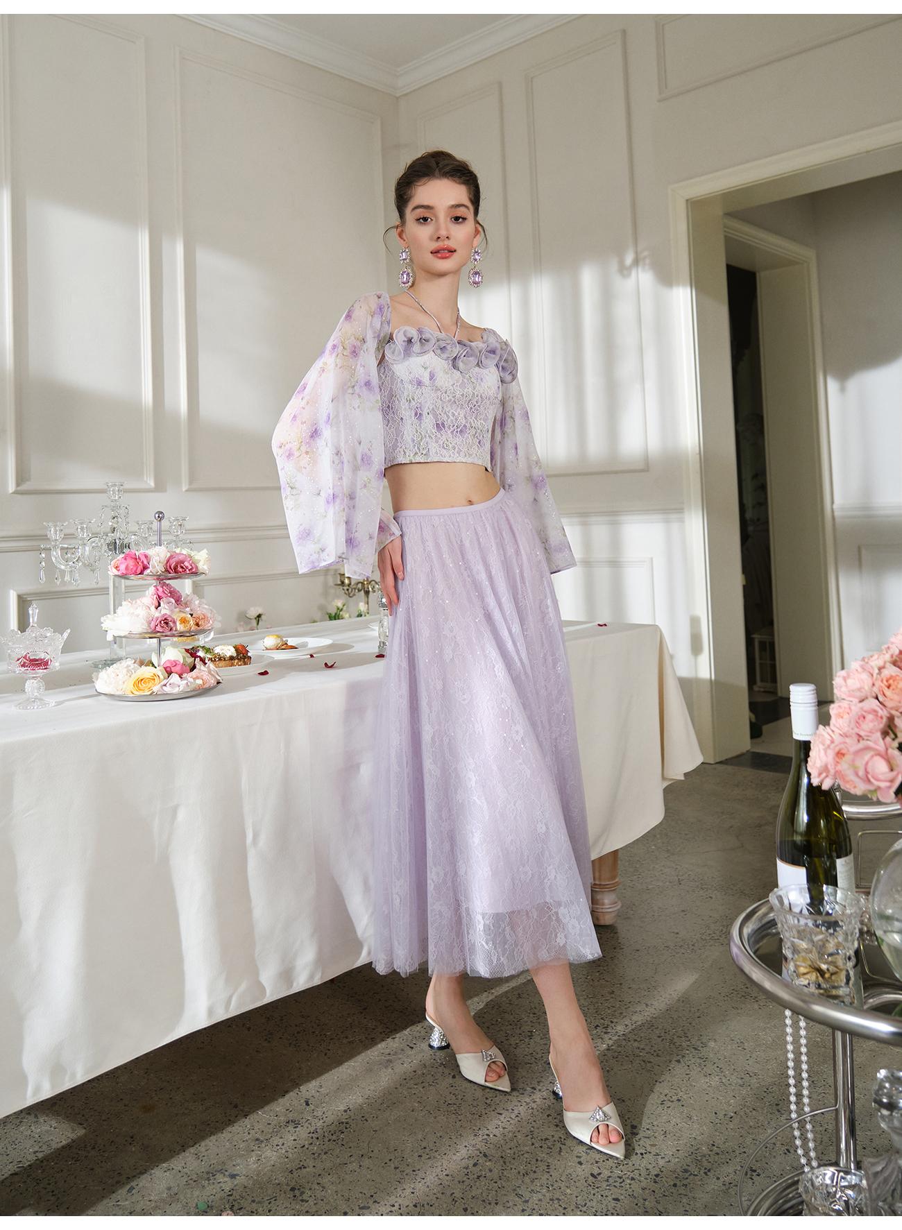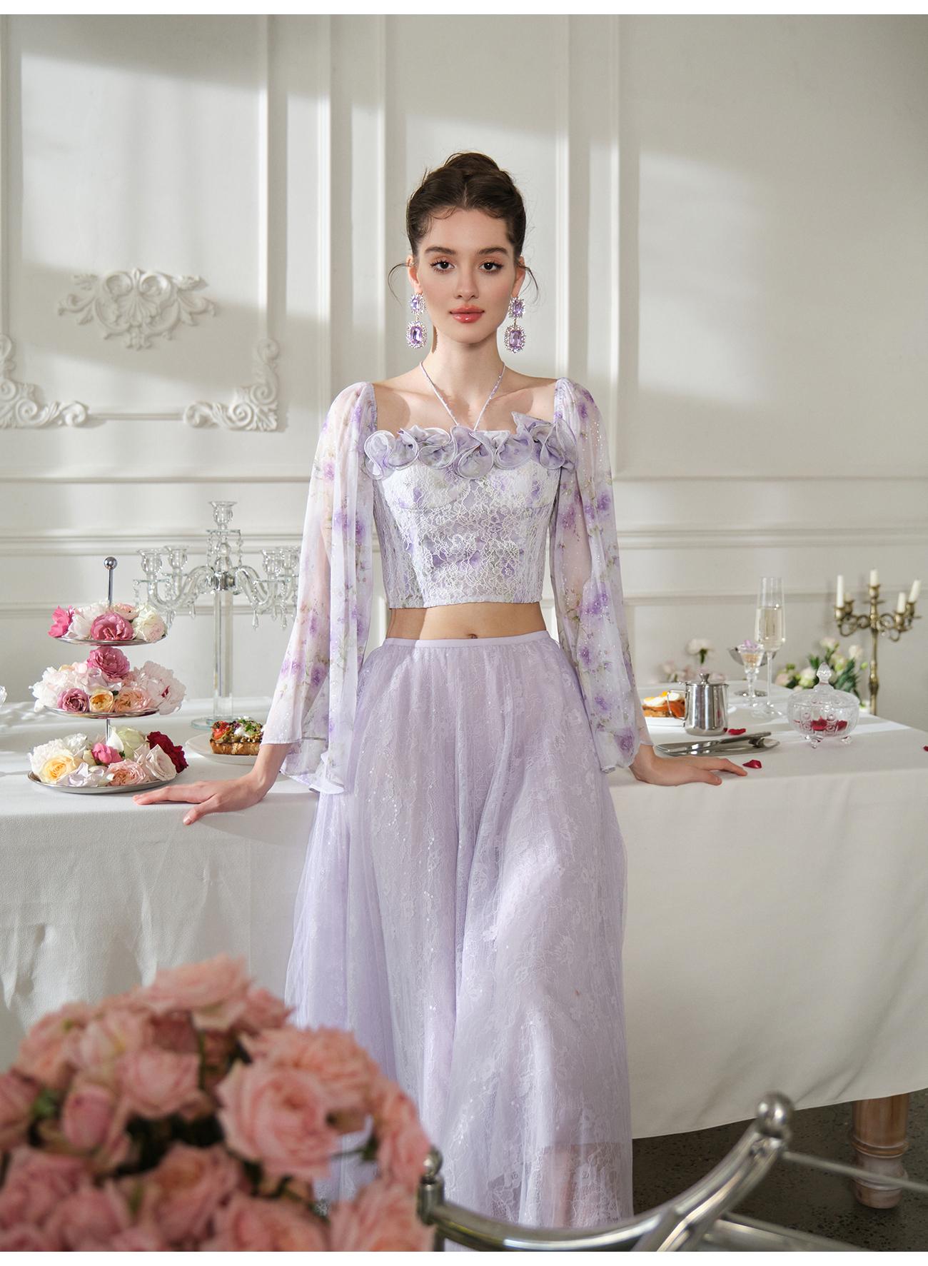 余潇潇【绘梦铃兰】设计感抹胸挂脖长袖立体花朵装饰蕾丝雪纺上衣
