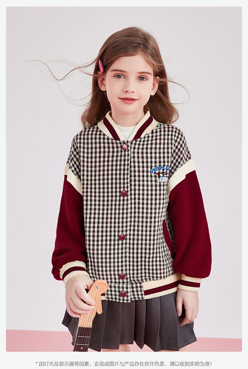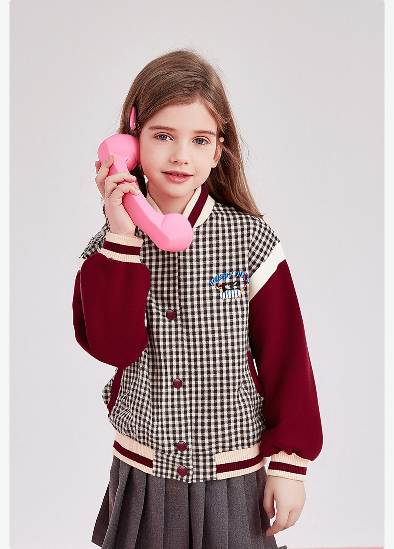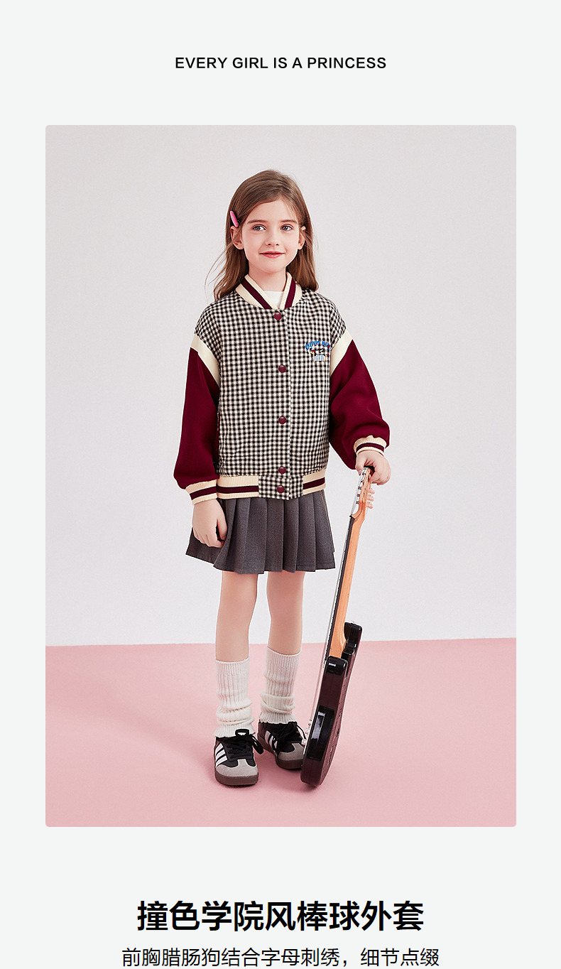 笛莎Deesha 童装女童外套2025秋新款女童撞色学院风棒球外套