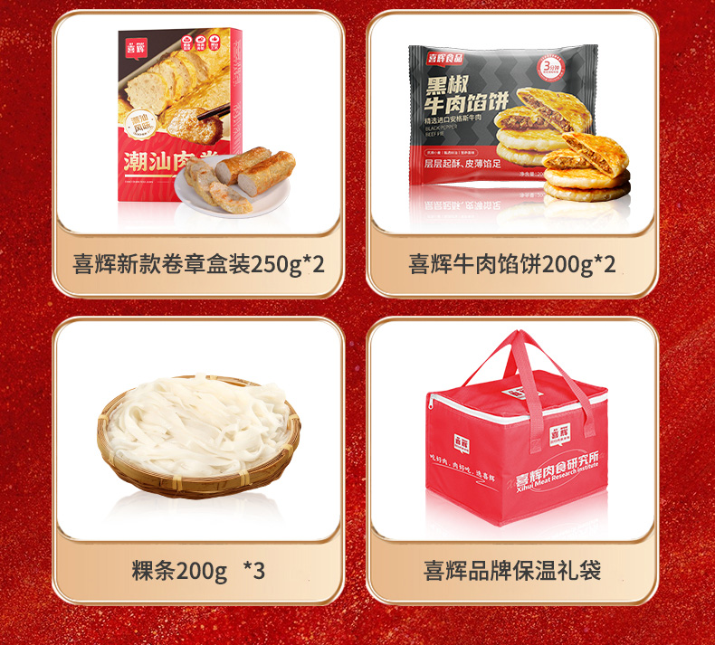 【喜辉潮汕牛鱼程祥年货礼盒】牛肉丸鱼丸卷章牛肉馅饼粿条 多种美味老少皆宜送礼佳品 到手11件带礼袋