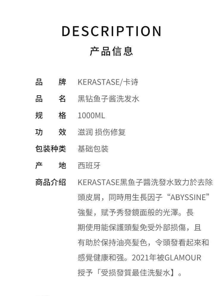 【保税仓直发】KERASTASE/卡诗黑钻钥源洗发水1000ml*2+卡诗黑钻钥源洗发水80ml