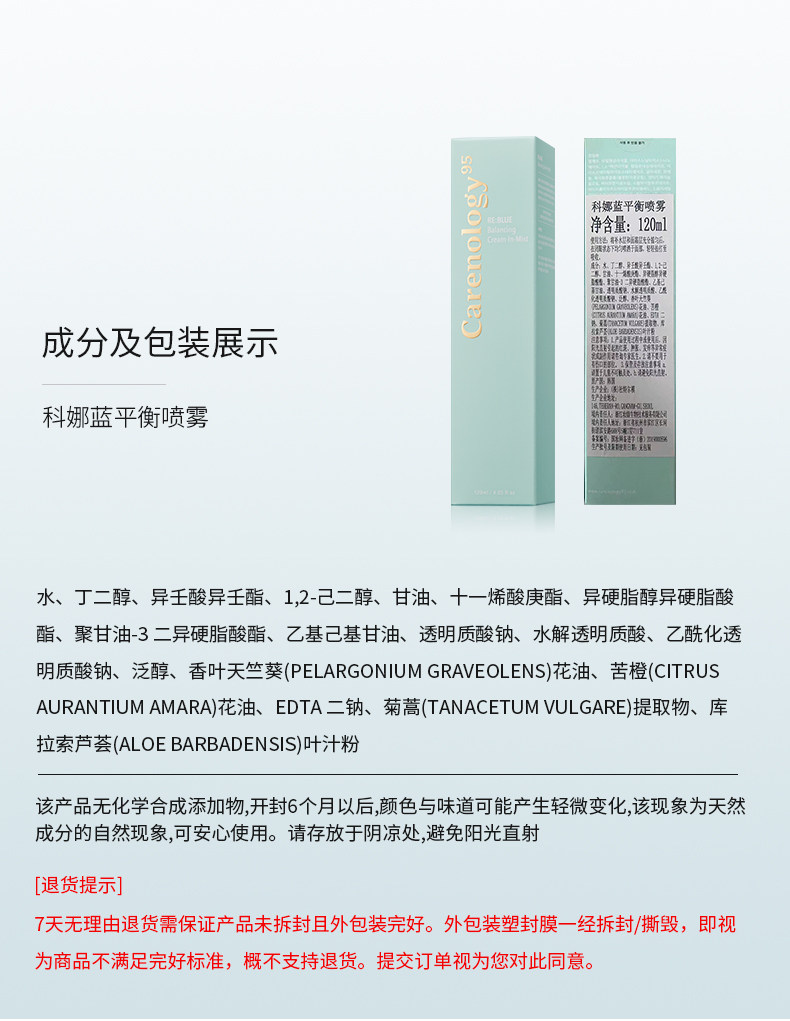 [五效合一] 韩国Carenology95/科娜蓝科娜平衡面霜水喷雾 精油爽肤水面霜五合一喷雾补水保湿爽肤妆前妆后定妆舒缓精华