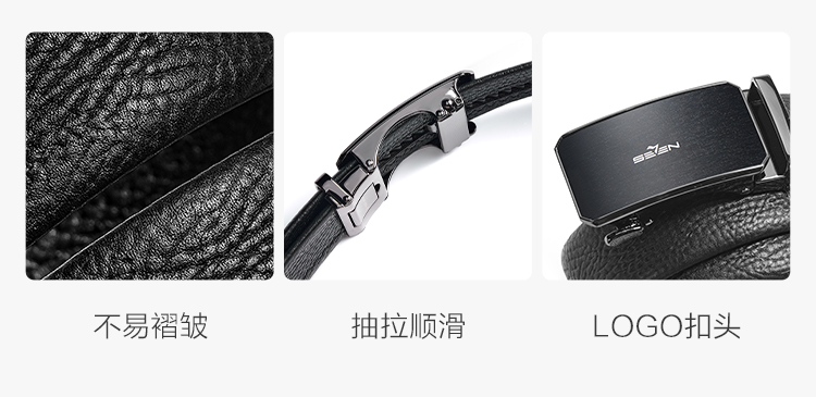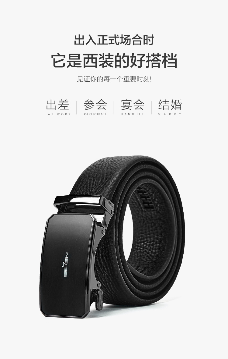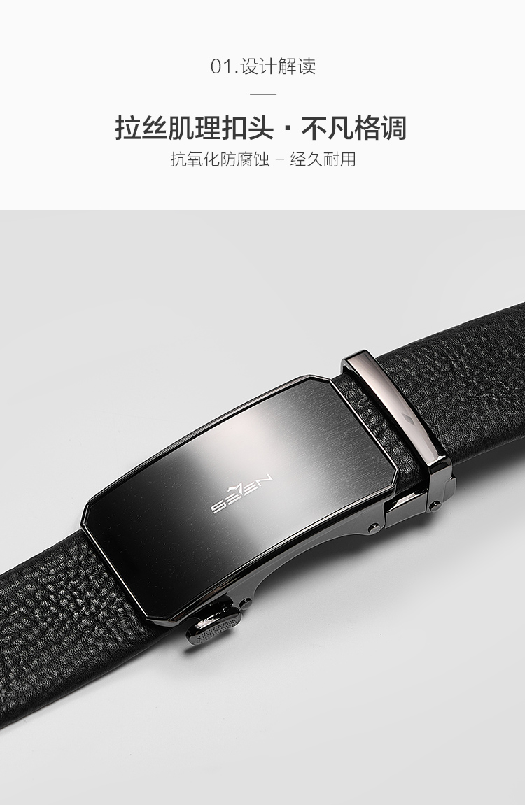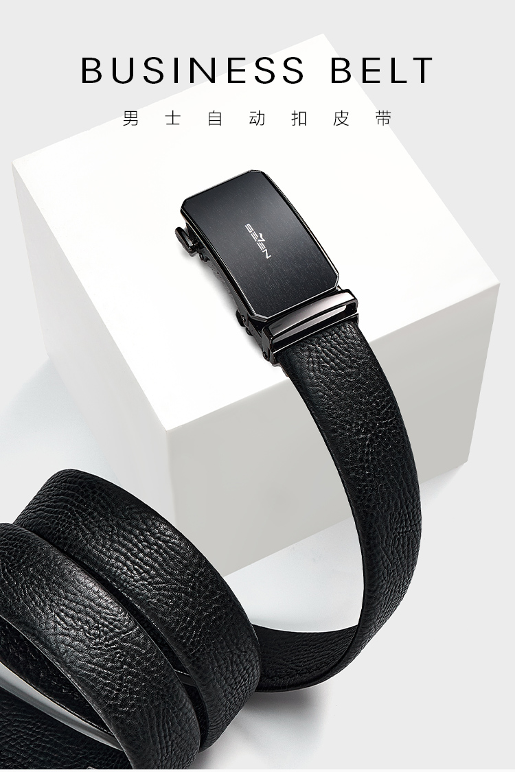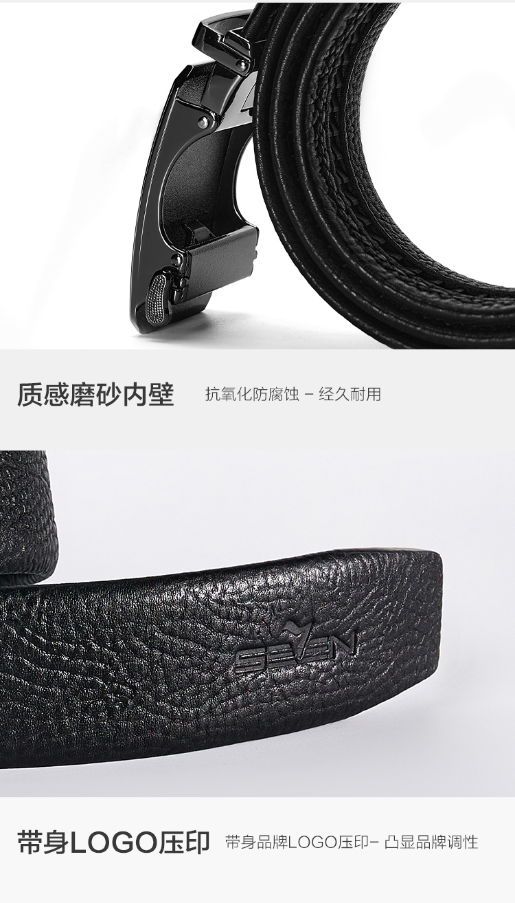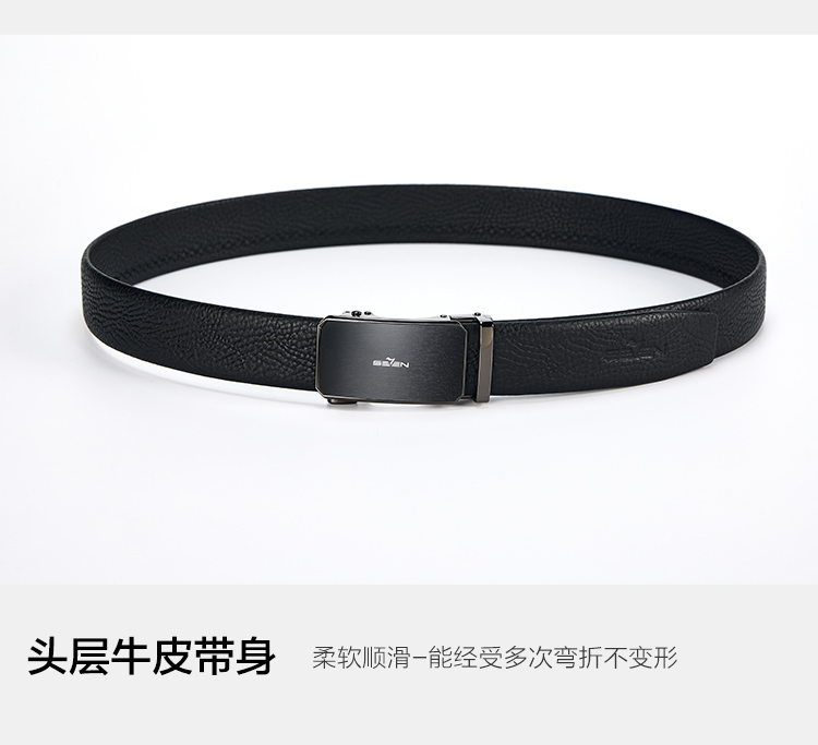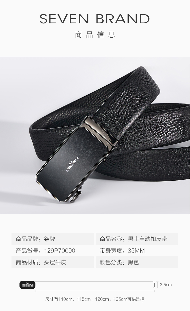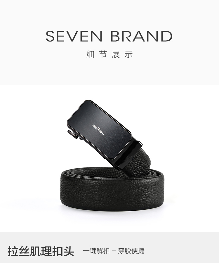 【婚礼季】柒牌皮带男士2025年新款拉丝自动扣头层牛皮真皮商务简约黑色腰带129P70090