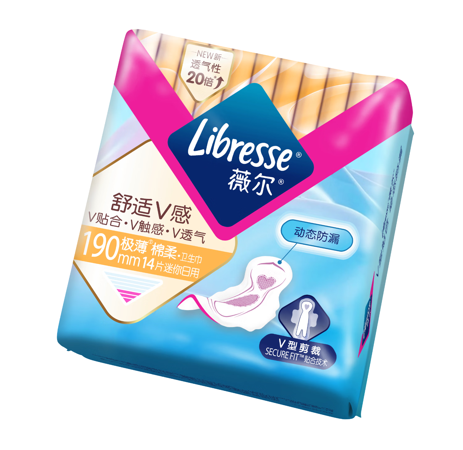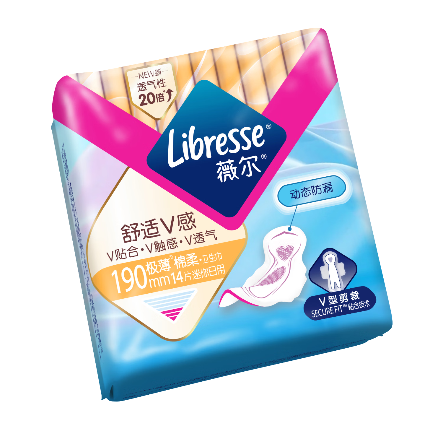 Libresse薇尔舒适V感190迷你14片极薄棉柔卫生巾