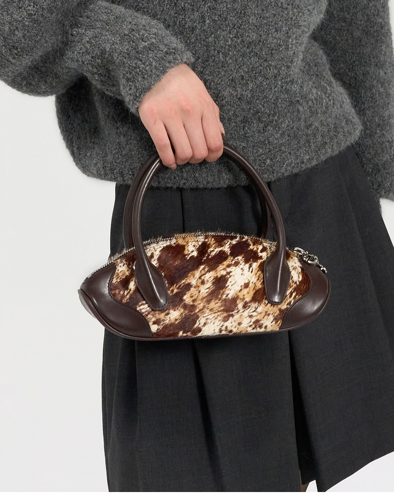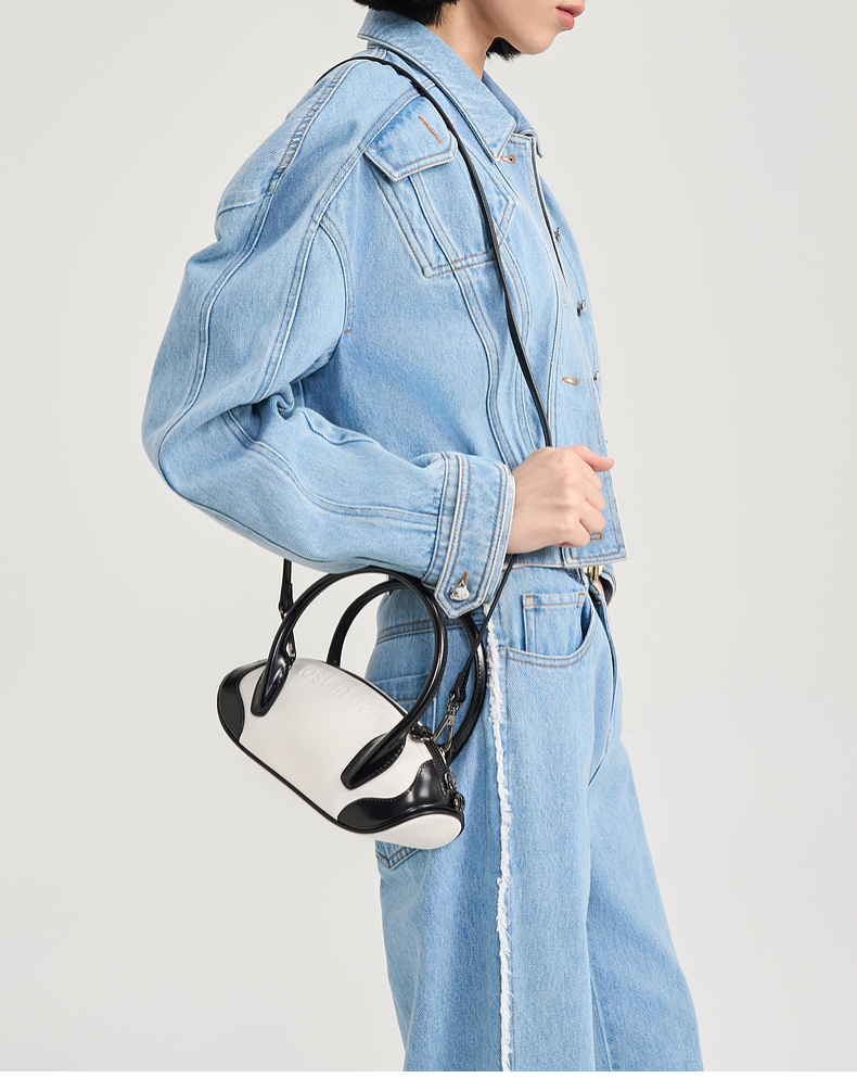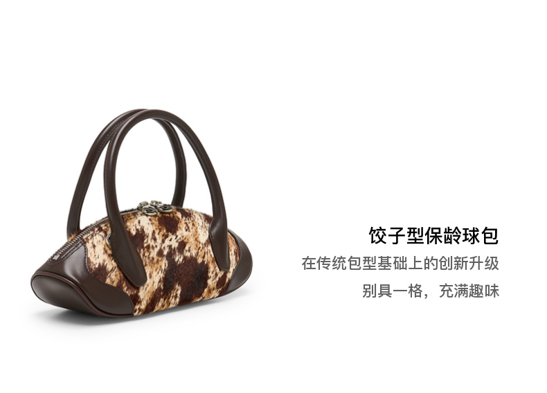 马君妍同款lost in echo趣味饺子型银色真皮高级保龄球斜挎手提包