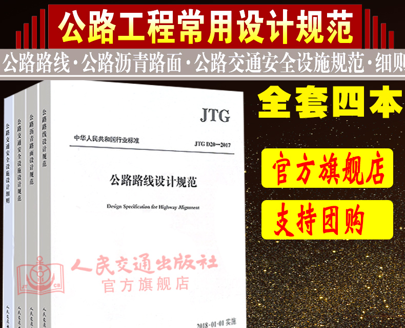 2018年现行规范 公路工程施工常用设计规范一套4本 JTG D81-2017公路交通安全设施设计细则D20-2017路线设计D50-2017沥青路面规范