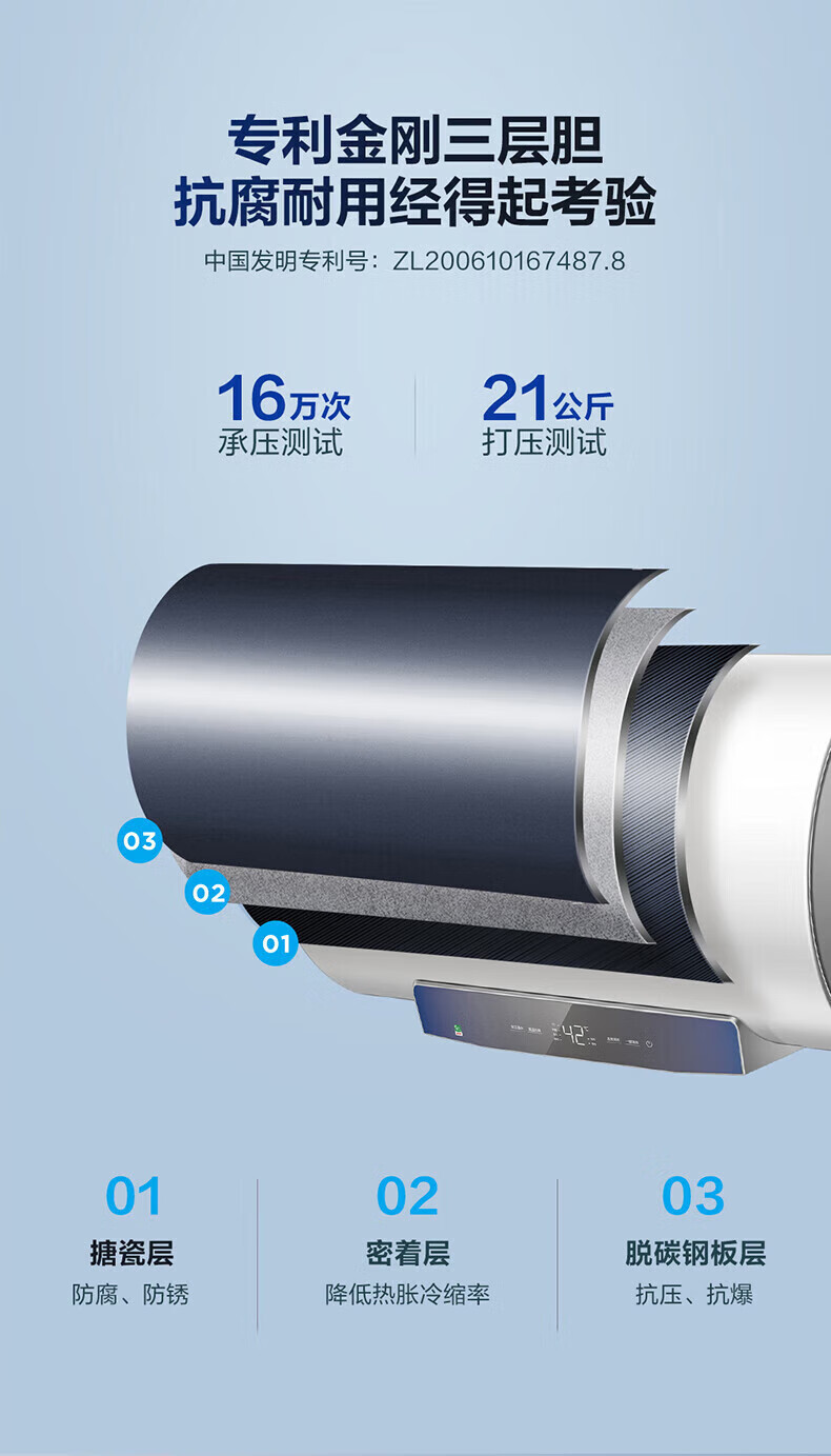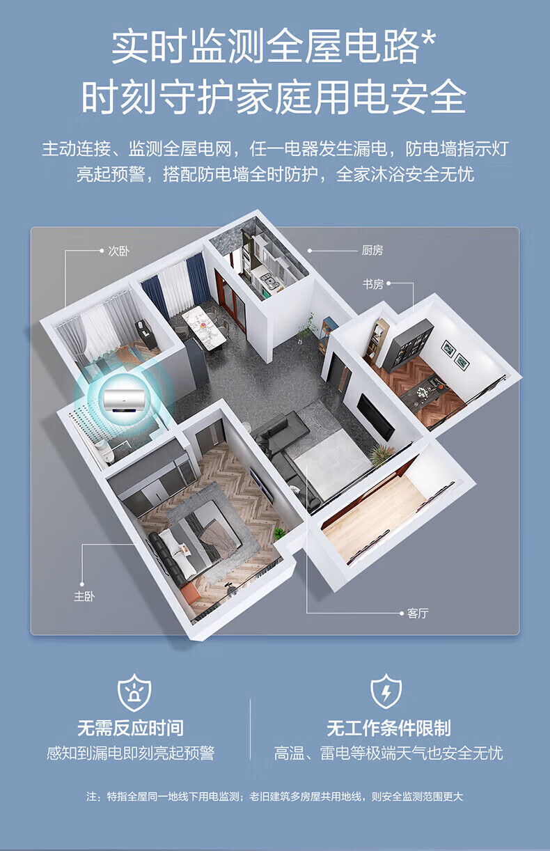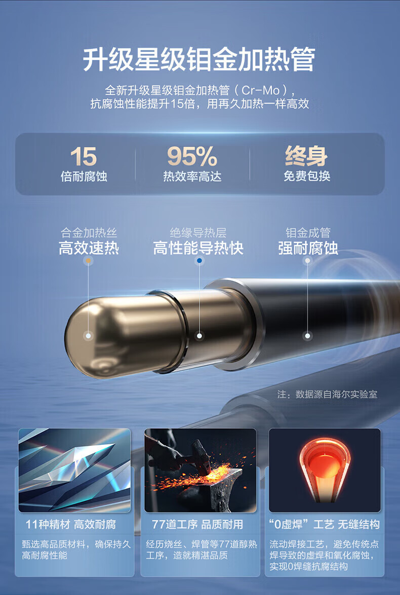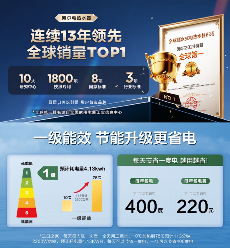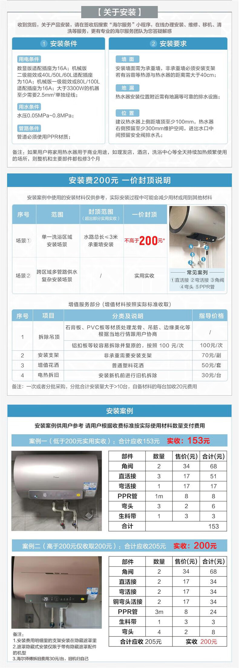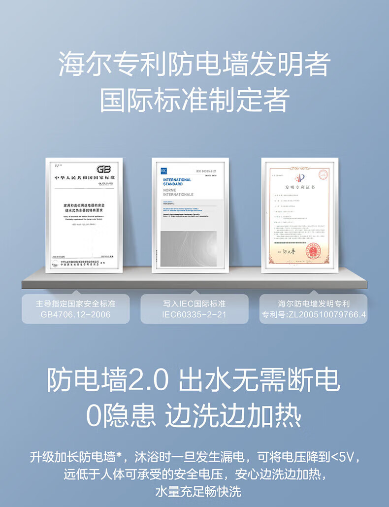 海尔家用50L电热水智能WIFI储水式卫生间洗澡一级能效变频 50L 2200W EC5001-MC3U1防电墙