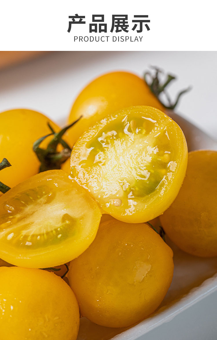 颗颗饱满,像黄色的宝石一样,晶莹剔透,而且黄色番茄中含有丰富的番茄红素,维生素C,维生素E和多种维生素,非常健康。