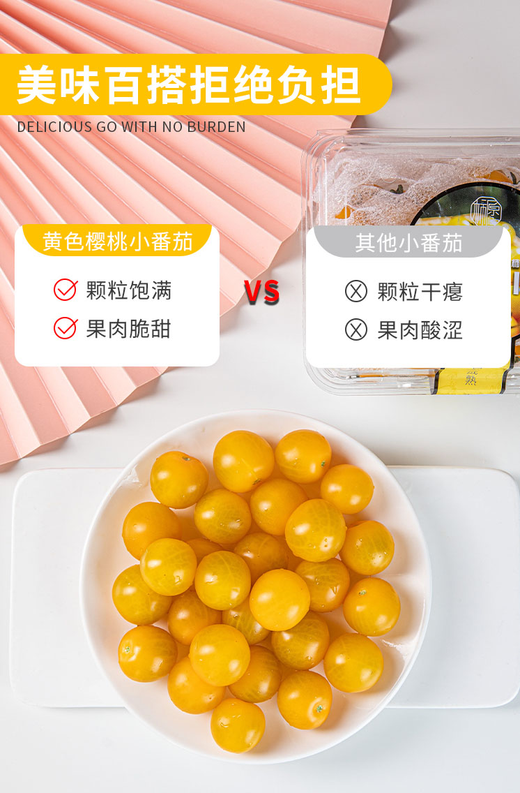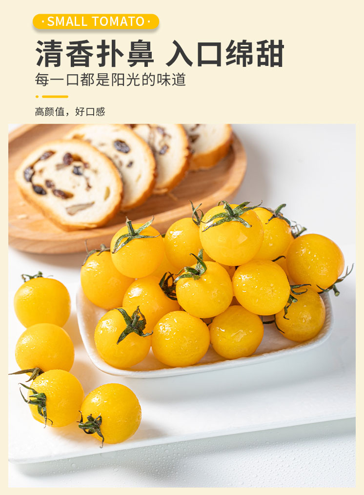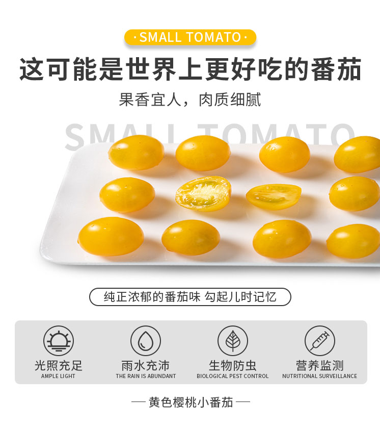 小小的一颗,大大的营养,黄樱桃小番茄中含有丰富的番茄红素,维生素C,维生素E和多种维生素,健康美味,是最好吃的小番茄。