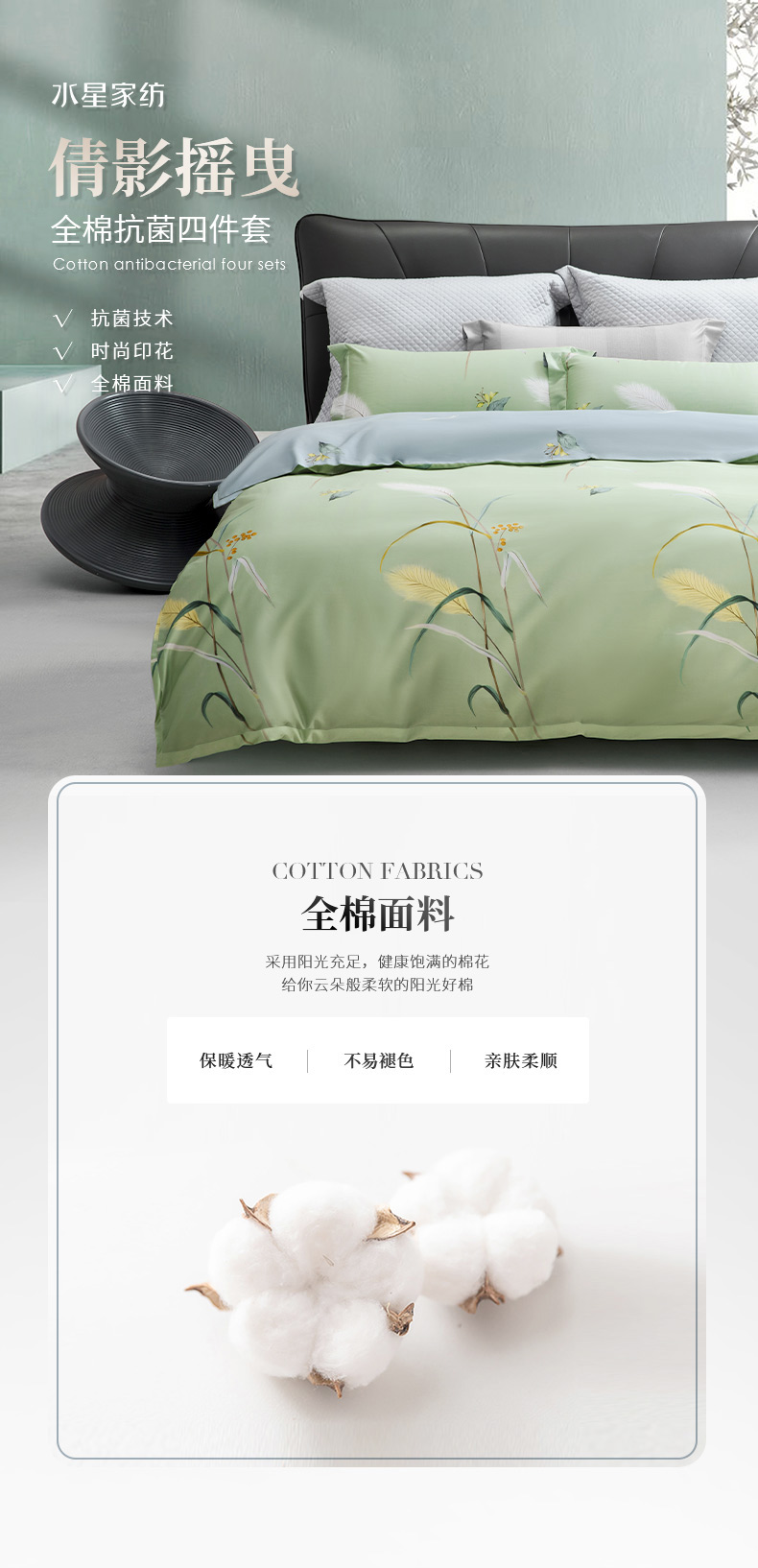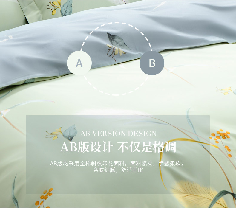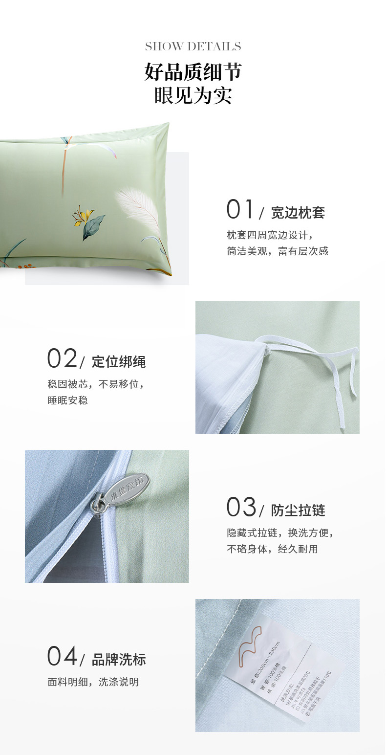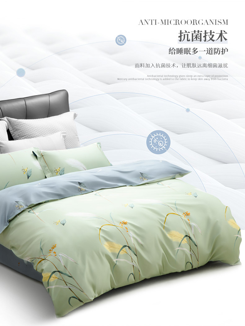 [水星家纺]倩影摇曳全棉抗菌四件套(被套: 200*230cm、床单: 230*250cm、枕套: 46*72cm*2 )