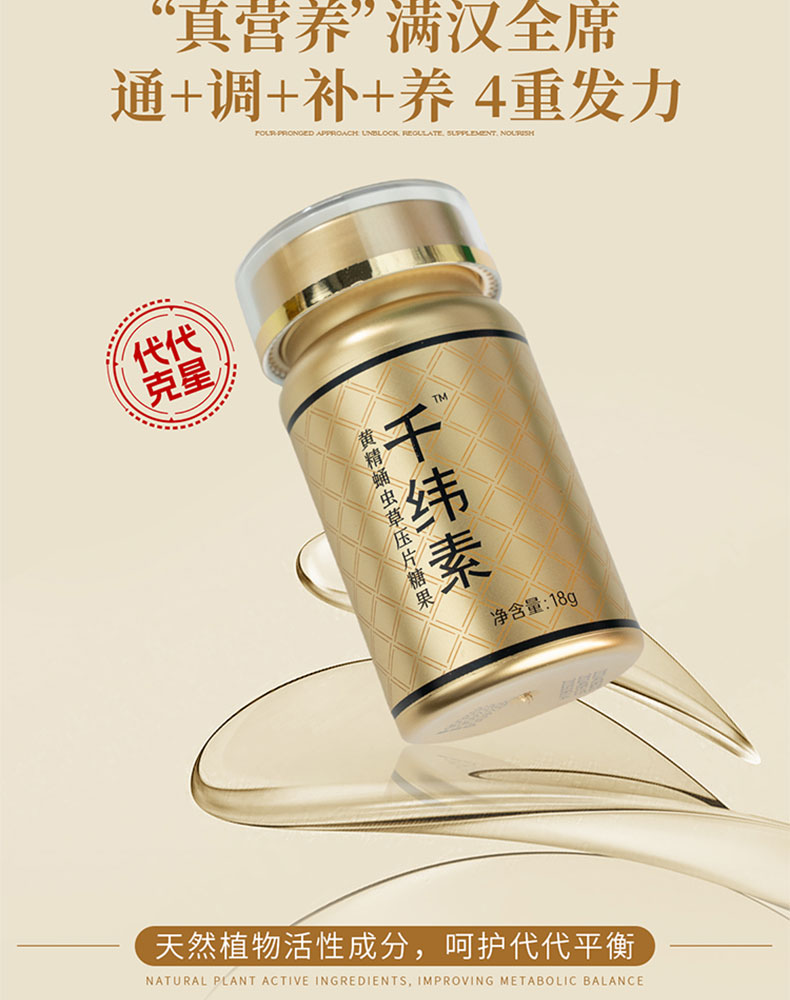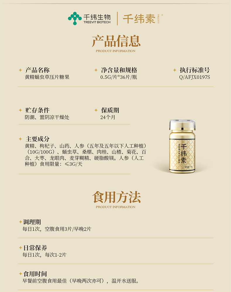 仰妈同款 阳后睡眠改善 千纬素黄精蛹虫草压片糖果