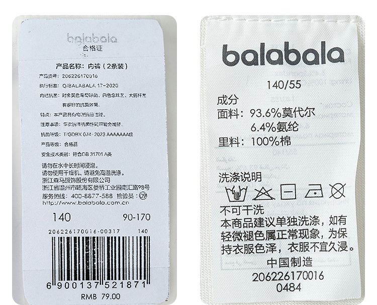 【商场同款】巴拉巴拉女内裤平角裤宝宝安全裤儿童短裤四角两条装