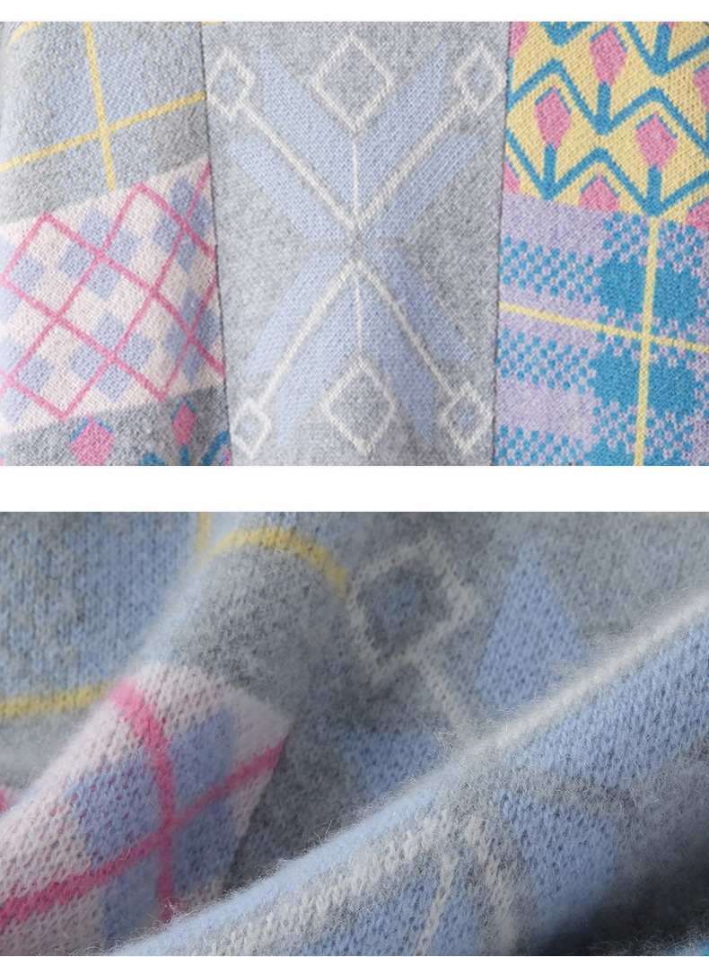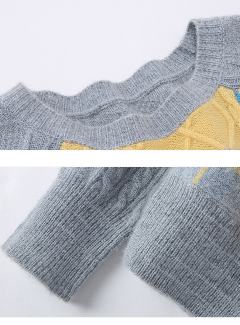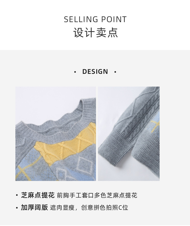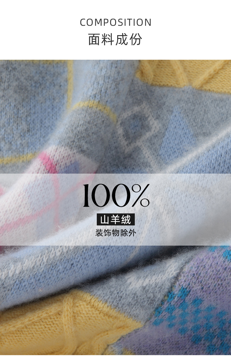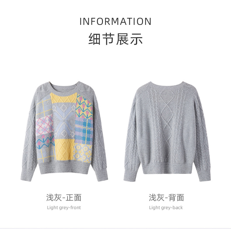 羚荌渼圆领少女感时尚慵懒芝麻点提花羊绒衫女